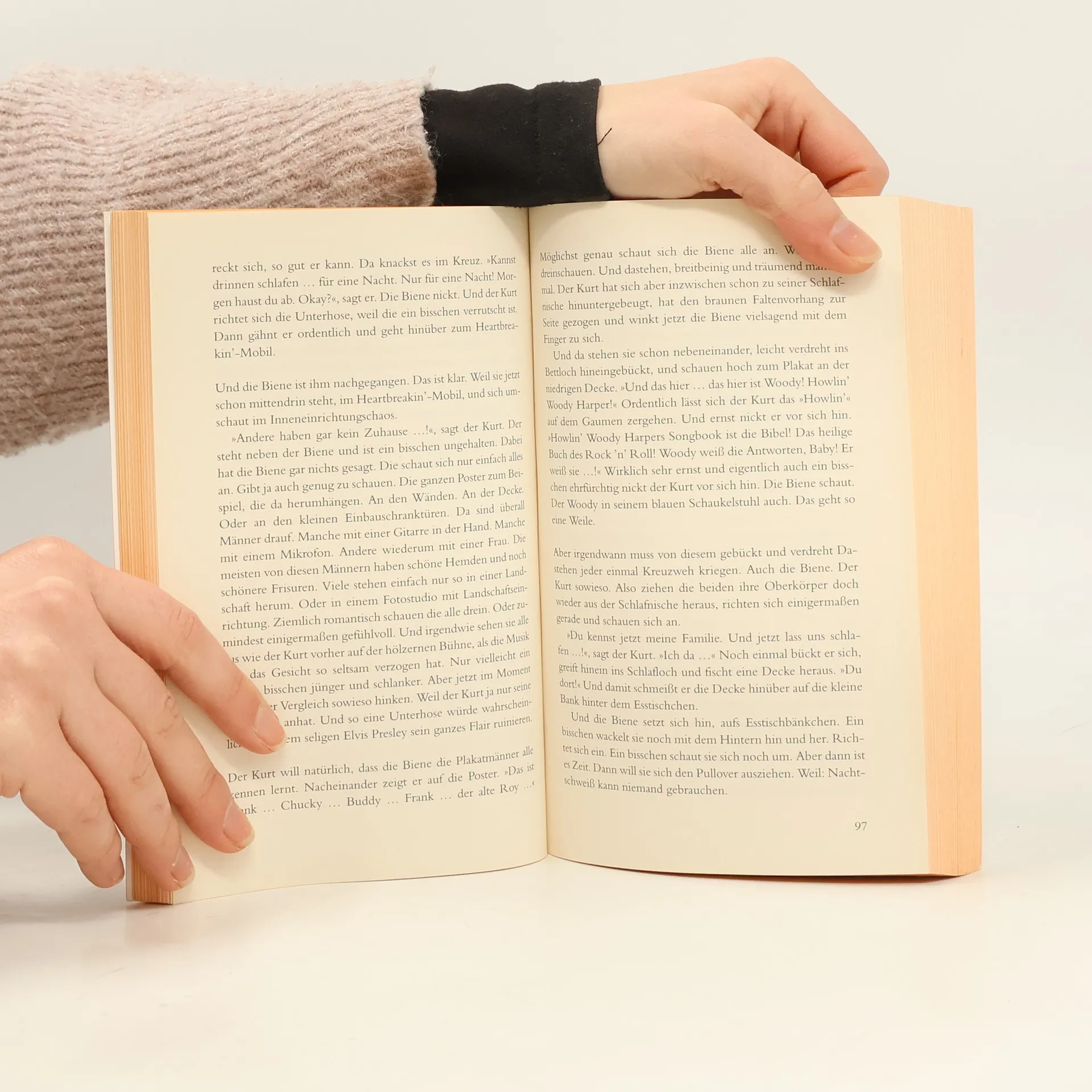 16-jährig, pummelig, klein, eigenwillig, Brillengläser wie Bierkrugböden und ein blonder, schräg vom Kopf abstehender „Pferdestummel“. Das ist Biene. Biene ist aus dem Mädchenheim geflüchtet und trifft an einem gottverlassenen Bahnhof auf den kettenrauchenden und versoffenen Schlagersänger Kurt. Gemeinsam touren Biene und Kurt nun im scheppernden aber glitzernden „Heartbreakin´-Mobil“ durch die Provinz, spielen in Wirtshäusern, Altenheimen und Zuchttierhallen, treffen auf gewaltige Bauern, tanzende Polizisten, Wirtinnen in roten Overalls, auf über tausend Truthahnküken und erleben auch sonst einige recht bemerkenswerte Abenteuer. Und ihnen wird klar, dass sie eigentlich beide auf der Suche nach Liebe sind. Eine atmosphärische Geschichte über Freiheit, Sehnsucht, die Provinz und zwei liebenswerte Außenseiter.