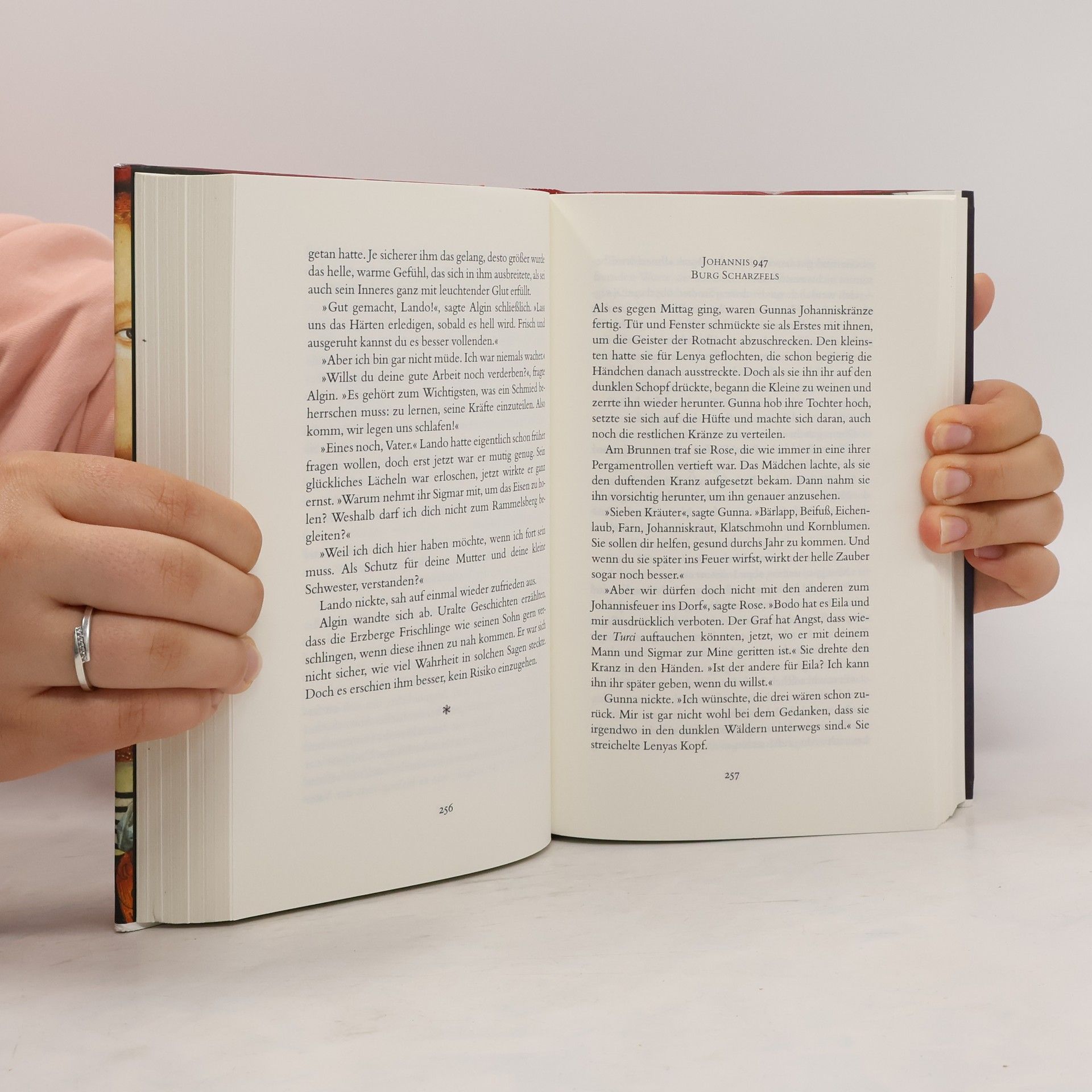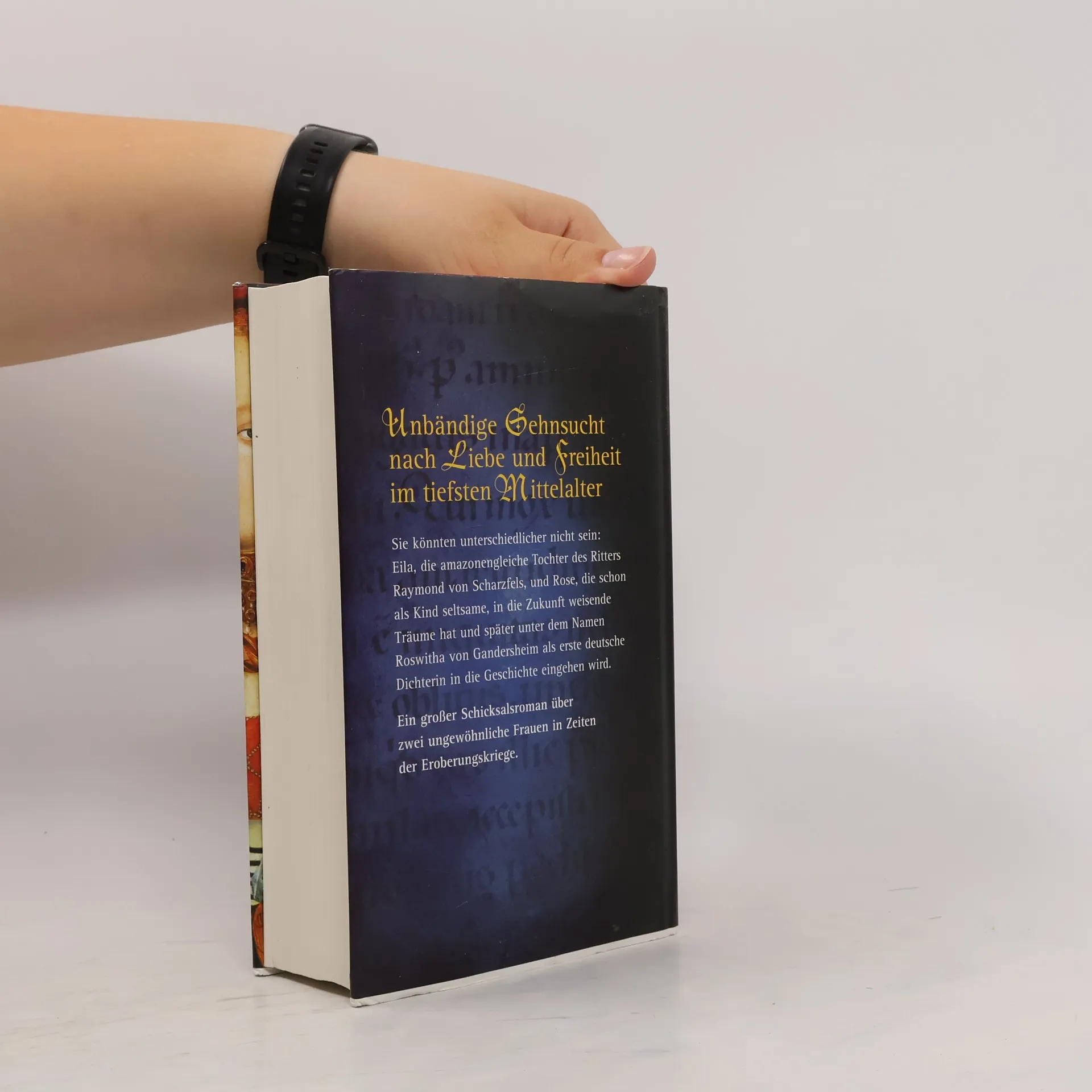 Unbändige Sehnsucht nach Liebe und Freiheit im tiefsten Mittelalter Scharzfels im Harz 946 n. Chr.: An einem kalten Wintertag kommt Roswitha auf die Burg des Grafen Raimund aus Lothringen. Der waffenerprobte Kämpfer steht im Dienste des Königs Otto I. und sieht seine geliebte Tochter Eila immer nur auf der Durchreise. So wachsen die beiden Mädchen zusammen auf, halten einander fest, obwohl sie wie Feuer und Wasser sind. Roswitha hört Wolken und Bäume sprechen, hält stets Wachstafel und Griffel bereit, Eila hingegen ist am liebsten auf Falkenjagd. Und so wird ihre Freundschaft Jahre später auf eine harte Probe gestellt: Während Eila in die Welt hinauszieht, der italienischen Königin Adelheid zur Flucht verhilft und schließlich die wahre Liebe findet, sucht Roswitha Zuflucht hinter den schützenden Mauern von Stift Gandersheim. Das Schicksal reißt sie auseinander, ohne Hoffnung auf ein Wiedersehen.