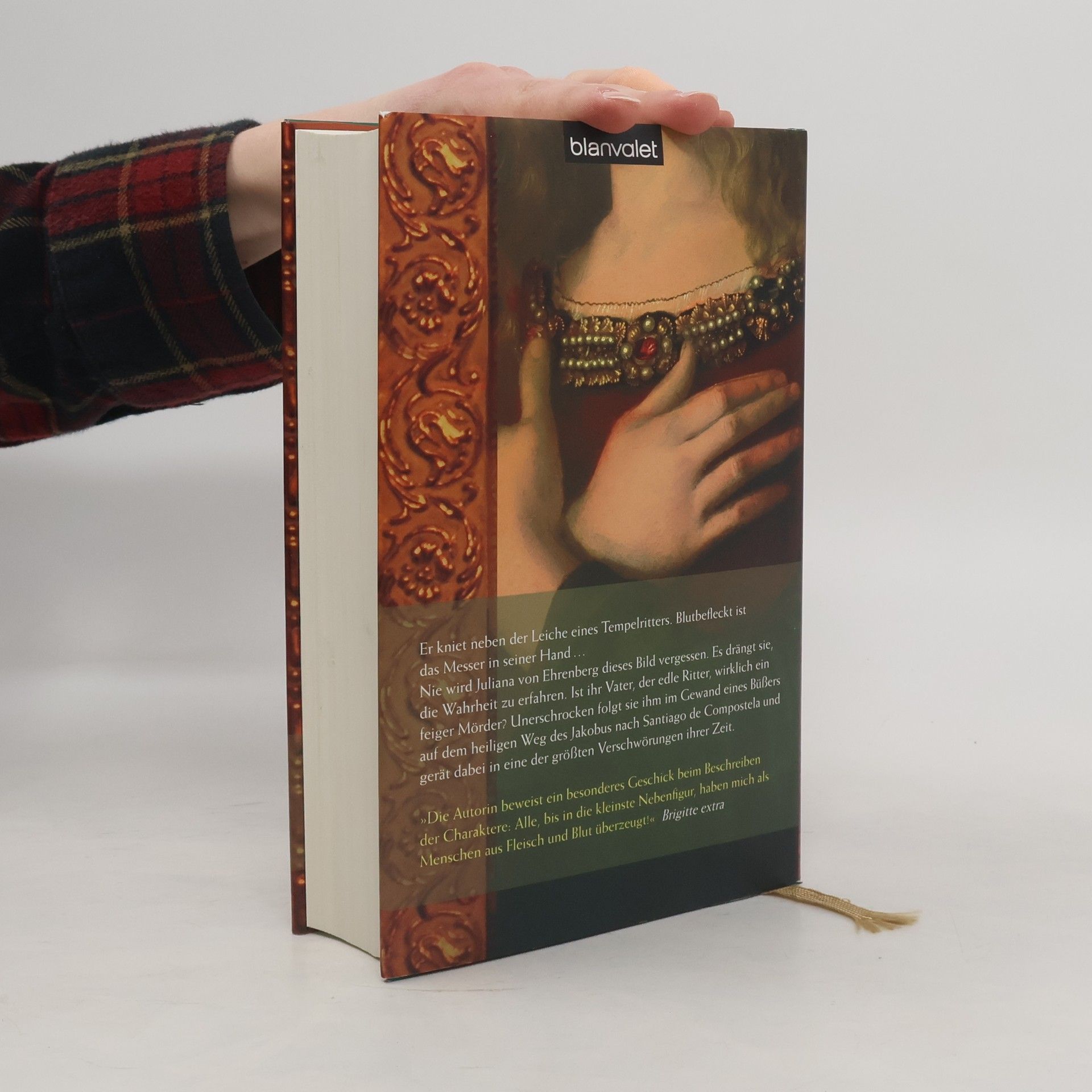 Eine starke Frau, ein mächtiger Orden, ein gefährlicher Weg. Juliana von Ehrenberg kniet neben der Leiche eines Tempelritters, das Blut befleckt ihr Messer. Dieses Bild wird sie nie vergessen und treibt sie zur Wahrheit: War ihr Vater, der edle Ritter, ein feiger Mörder? Auf dem heiligen Jakobsweg nach Santiago de Compostela begibt sie sich auf die Suche nach ihm und der Wahrheit. Der staubige Pilgerweg erstreckt sich über mehr als 800 Kilometer. Wird sie ihren Vater und die Antworten finden? Zunächst verschwindet Wolf von Neipperg, ihr Freund und heimlicher Favorit. Kurz darauf verlässt ihr Vater, Kraft von Ehrenberg, heimlich die Burg. Entschlossen folgt Juliana ihm, während sie sich weigert, einen benachbarten Ritter zu heiraten und die mysteriösen Ereignisse auf der Burg sowie den Mord an dem Tempelritter Swicker aufzuklären. Verkleidet als Knappe, wandert sie mit vier Männern durch Navarra und Kastilien. Doch sind ihre Begleiter wirklich Pilger? Juliana beginnt zu erkennen, dass niemand das ist, was er vorgibt. Zudem ist sie nicht die Einzige, die ihren Vater einholen will. Unwissend über die geheimen Machenschaften innerhalb der Templer und die Mission ihres Vaters, eilt Juliana voran. Doch trotz ihrer Bemühungen kann sie das Rad der Geschichte nicht aufhalten …