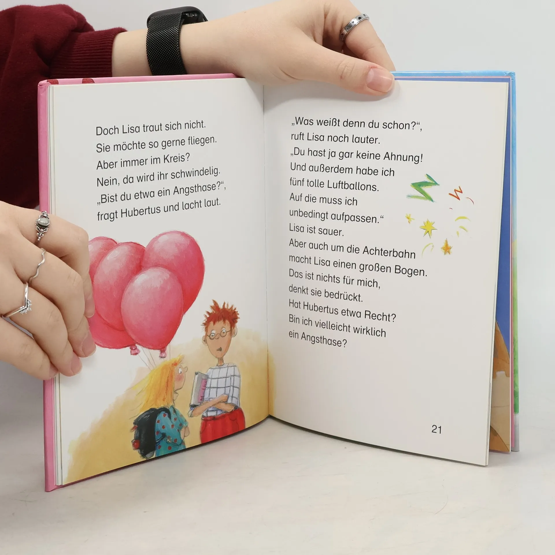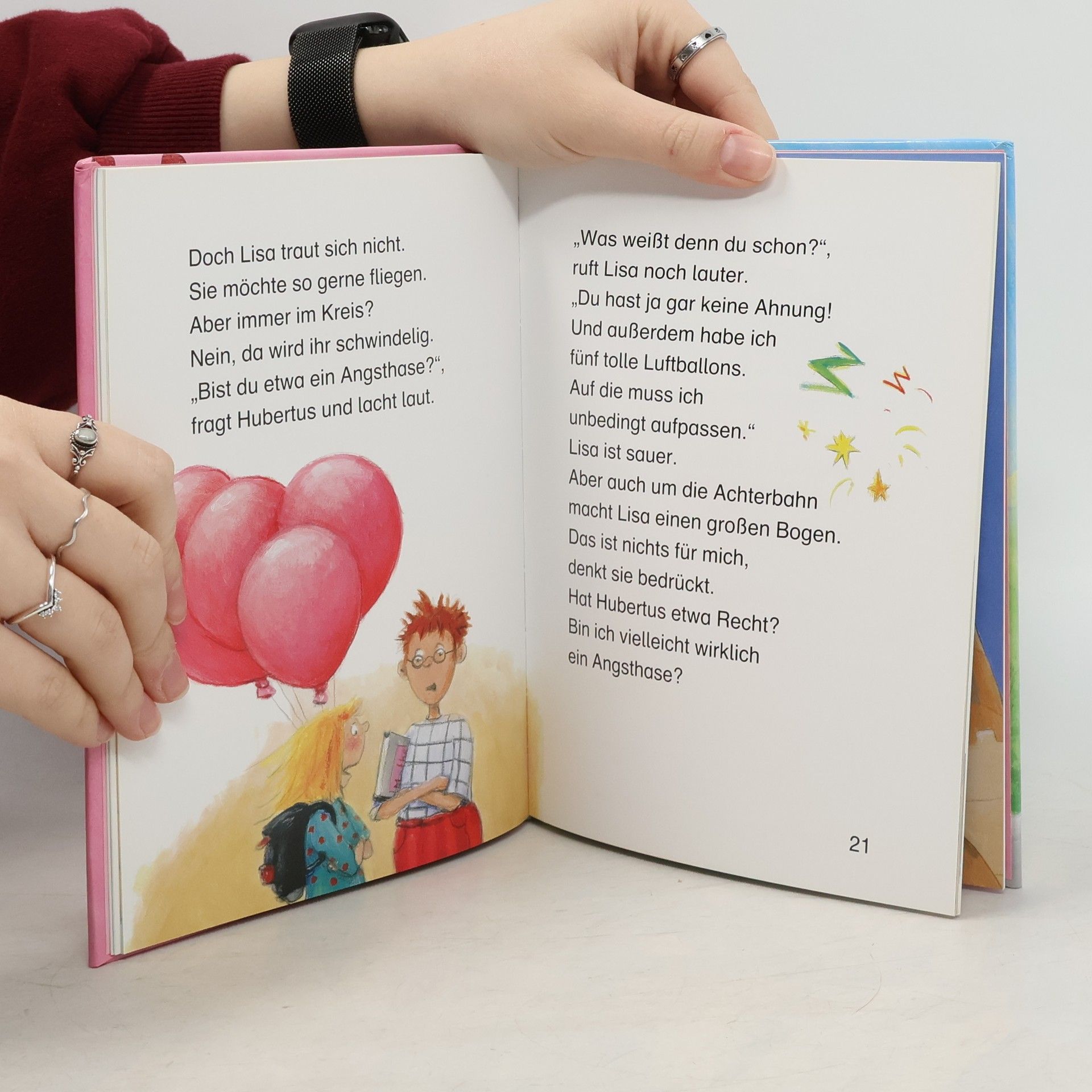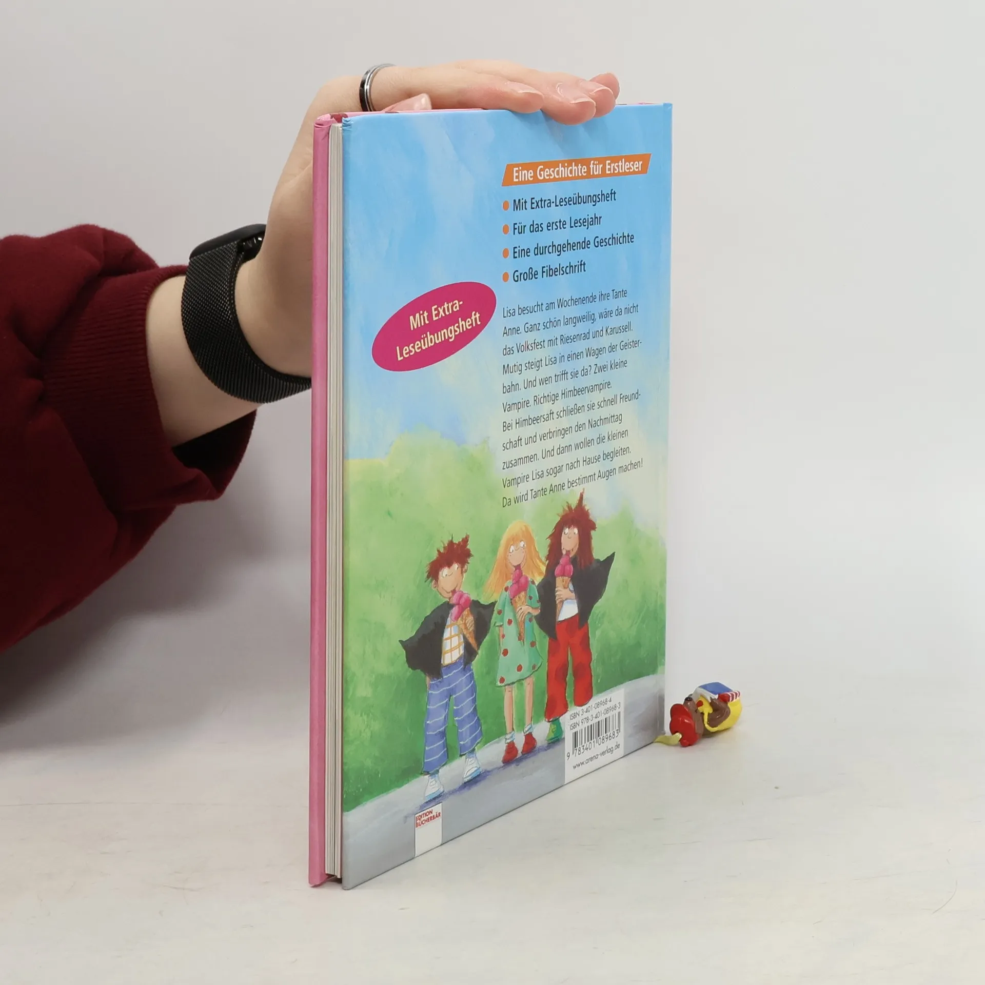 Lisa besucht am Wochenende ihre Tante Anne. Doch die hat nur ihre Blumen im Kopf. Ganz schön langweilig! Wäre da nicht das Volksfest mit Riesenrad und Karussell. Mutig steigt Lisa in einen Wagen der Geisterbahn. Und wen trifft sie da? Zwei kleine Vampire. Richtige Himbeervampire. Bei Himbeersaft schließen sie schnell Freundschaft und verbringen den ganzen Nachmittag zusammen. Und dann wollen die kleinen Vampire Lisa sogar nach Hause begleiten. Da wird Tante Anne bestimmt Augen machen.