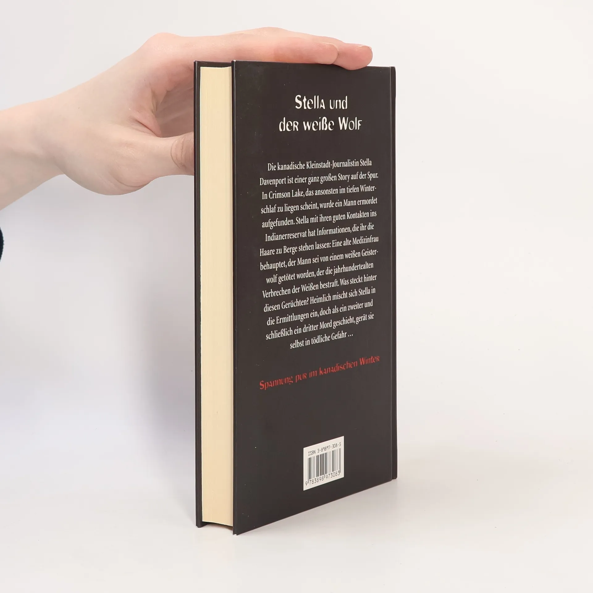 Die kanadische Kleinstadt-Journalistin Stella Davenport ist einer ganz großen Story auf der Spur: In Crimson Lake, das ansonsten im tiefen Winterschlaf zu liegen scheint, wurde ein Mann ermordet aufgefunden. Stella mit ihren guten Kontakten ins Indianerreservat hat Informationen, die ihr die Haare zu Berge stehen lassen: Eine alte Medizinfrau behauptet, der Mann sei von einem weißen Geisterwolf getötet worden, der die jahrhundertealten Verbrechen der Weißen bestraft. Was steckt hinter diesen Gerüchten? Heimlich mischt sich Stella in die Ermittlungen ein, doch als ein zweiter und schließlich ein dritter Mord geschieht, gerät sie selbst in tödliche Gefahr.