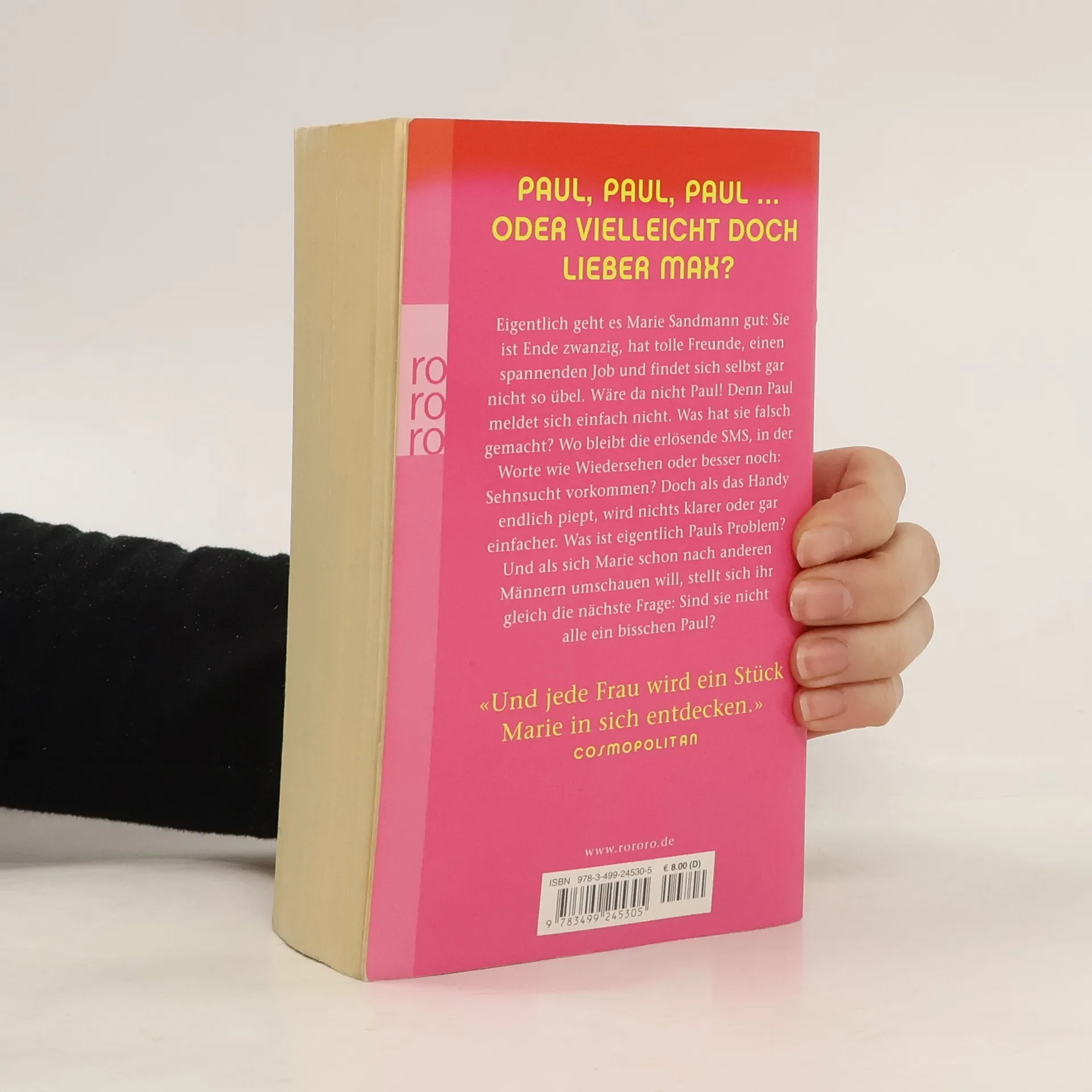 Paul, Paul, Paul… oder vielleicht doch lieber Max? Eigentlich geht es Marie Sandmann gut: Sie ist Ende Zwanzig, hat tolle Freunde, einen spannenden Job und findet sich selbst gar nicht so übel. Wäre da nicht Paul! Denn Paul meldet sich einfach nicht. Was hat sie falsch gemacht? Wo bleibt die erlösende SMS, in der Worte wie Wiedersehen oder besser noch: Sehnsucht vorkommen? Doch als das Handy endlich piept, wird nichts klarer oder gar einfacher. Was ist eigentlich Pauls Problem? Und als sich Marie schon nach andern Männern umschauen will, stellt sich ihr gleich die nächste Frage: Sind sie nicht alle ein bisschen Paul? „Und jede Frau wird ein Stück Marie in sich entdecken.“ (Cosmopolitan)