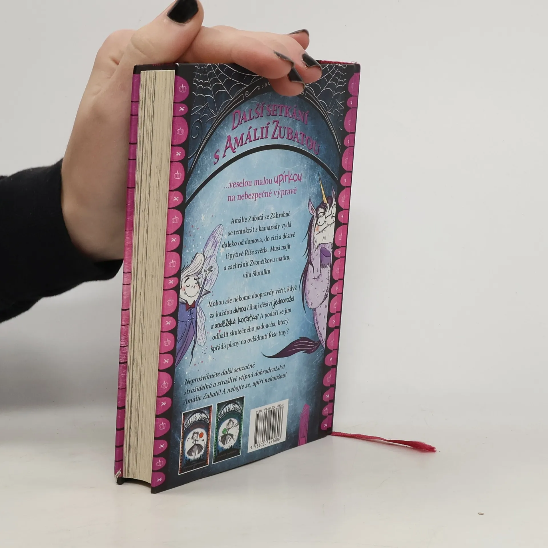 Amálie Zubatá ze Záhrobně je upírka s největším srdcem na světě. Tentokrát se se svou kamarádkou Květou (která NENÍ VOBLUDA a patří k vzácnému plemeni yettiů), smrťáčkem Chmurošem, princem Zvončíkem (který byl rozmazlený spratek, ale napravil se) a svou domácí dýní Tykvískem vydá daleko od domova, do cizí a děsivé Říše světla. Musí najít a zachránit Zvončíkovu matku, vílu Slunilku. Mohou ale někomu doopravdy věřit, když za každou duhou číhají děsiví jednorožci a andělská koťátka zkázy? A podaří se jim odhalit skutečného padoucha, který spřádá plány na ovládnutí Říše tmy?