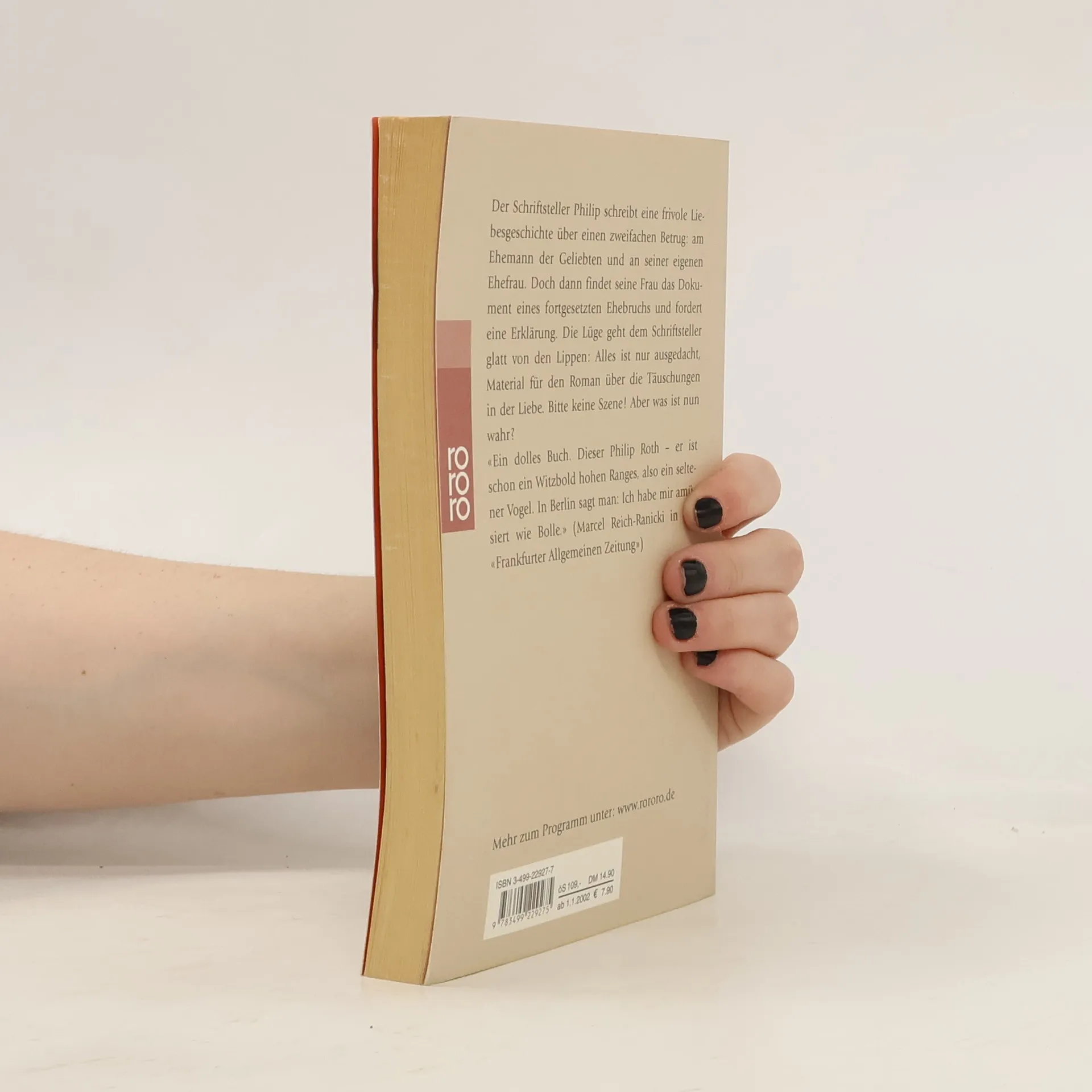 »Ein dolles Buch. Dieser Philip Roth – er ist schon ein Witzbold hohen Ranges, also ein seltener Vogel. In Berlin sagt man: Ich habe mir amüsiert wie Bolle.« MARCEL REICH-RANICKI IN DER FAZ »Bei der Geliebten tritt das alltägliche Leben in den Hintergrund«, schreibt Roth. In »Täuschung« erweist er sich als brillanter Beobachter menschlicher Leidenschaften und führt uns in die engumgrenzte Welt einer ehebrecherischen Beziehung, und dies mit einer Direktheit, die in der amerikanischen Literatur ihresgleichen sucht. Die Handlung des Buches findet in Gesprächen statt – meist hören wir die beiden Liebenden vor oder nach dem Liebesakt. Mehr geschieht nicht, aber mehr ist auch gar nicht nötig.