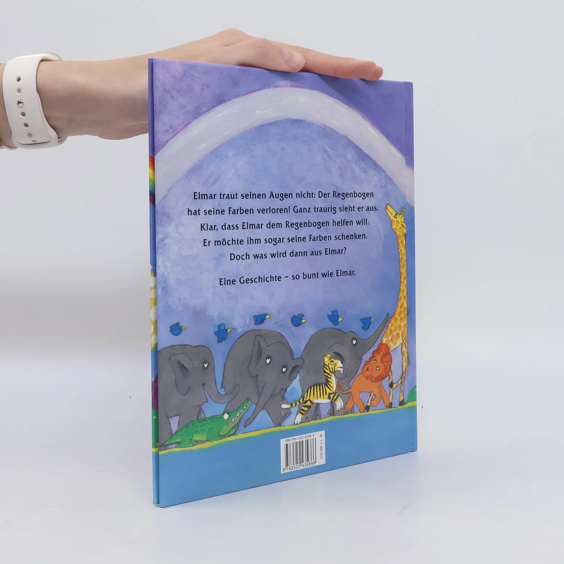 Elmar traut seinen Augen nicht: Der Regenbogen hat seine Farben verloren! Ganz traurig sieht er aus. Klar, dass Elmar dem Regenbogen helfen will. Er möchte ihm sogar seine Farben schenken. Doch was wird dann aus Elmar? Ein neues Abenteuer mit Elmar, dem bunt karierten Elefanten! Ab 4 Jahren