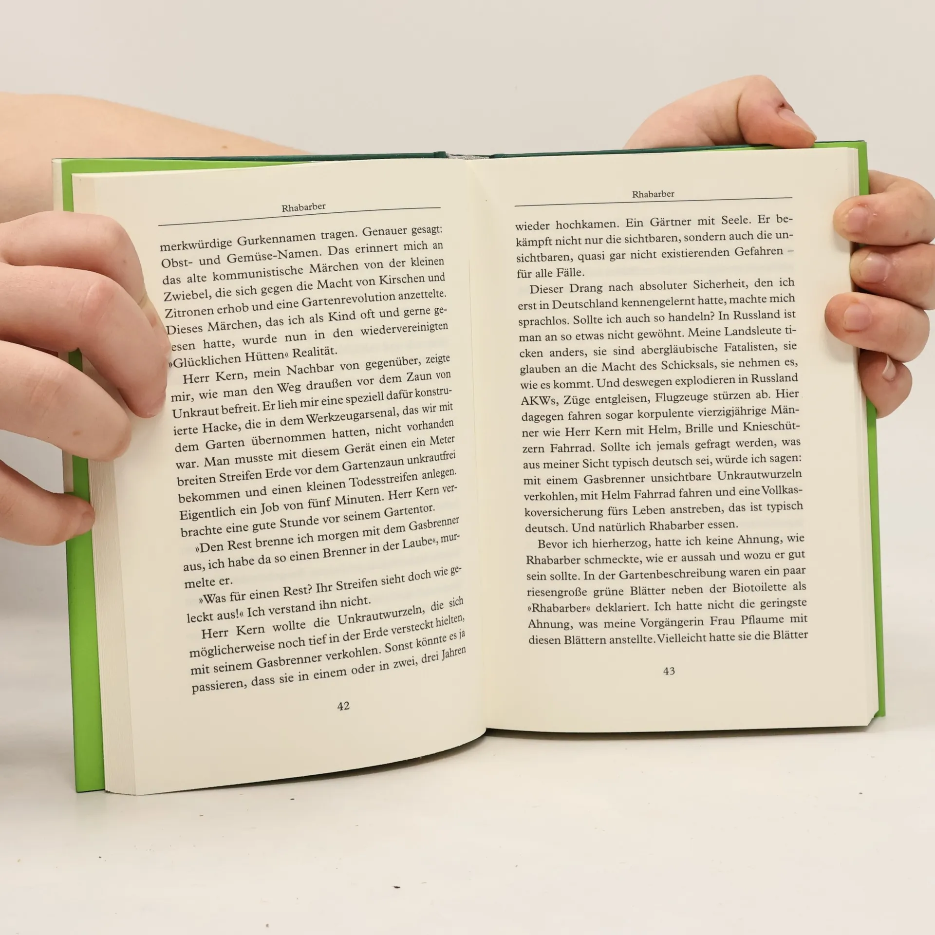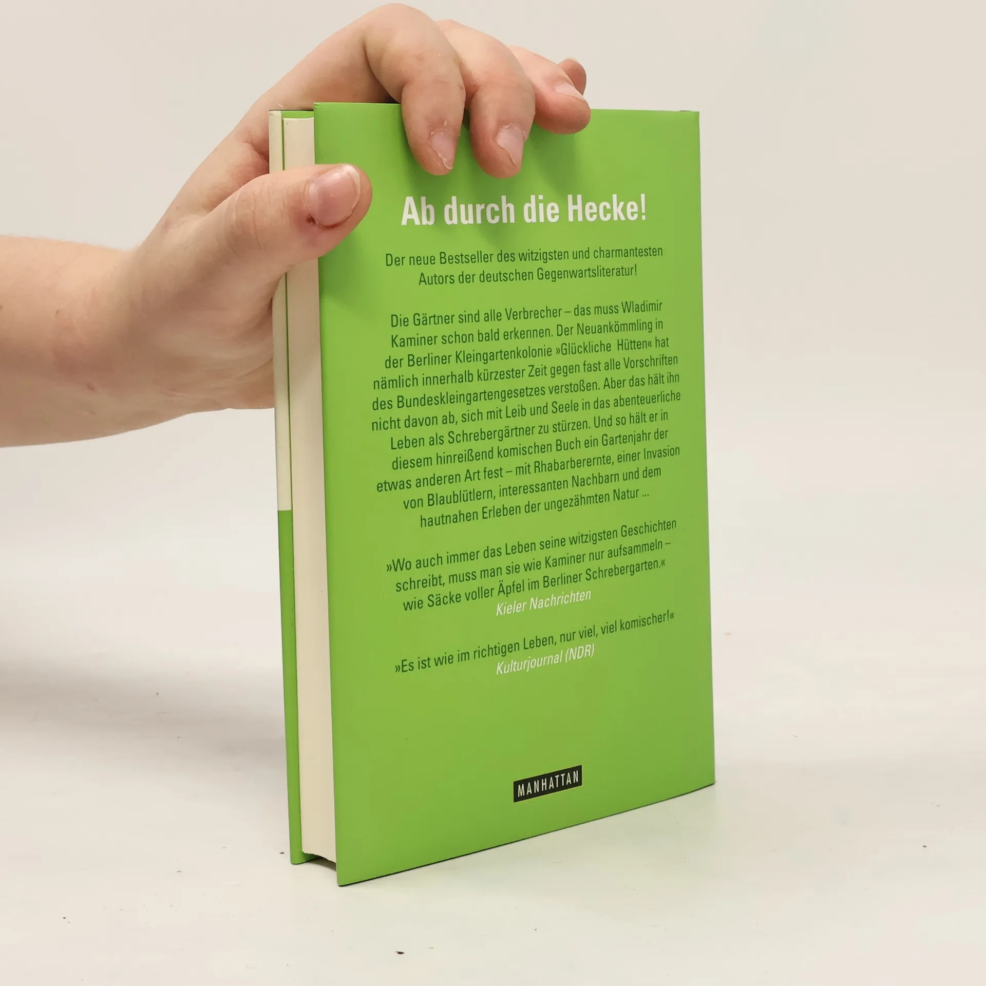 Der Schrebergarten – eine Oase für Dichter und Denker, aber auch eine Herausforderung für jeden echten Mann. Wladimir Kaminer erzählt von seinen Abenteuern als Besitzer der Parzelle 118 in der Berliner Kleingartenkolonie „Glückliche Hütten“. Nach eingehender Lektüre der Gartenordnungen wird ihm klar, dass er und seine Nachbarn in nur zwei Monaten gegen zahlreiche Vorschriften verstoßen haben, darunter Ruhestörung und das Anpflanzen unerlaubter Hecken. Selbst die Idee, eine Kuh anzuschaffen, wird nicht ausgeschlossen. Mit Humor schildert Kaminer die skurrilen Begegnungen mit seinen Nachbarn, wie Günther Grass, der ihn ermutigt, keine Angst vor Bürokraten zu haben, und Frau Beere, die ihm Tipps für den Garten gibt. Die Gärtner scheinen alle kleine Verbrecher zu sein, wenn man die Gesetze genau nimmt, was Kaminer ein wenig beruhigt. Er beschreibt die Herausforderungen des Gärtnerns, von Fruchtfliegen über einen flugunfähigen Kanarienvogel bis hin zu einer unerwarteten Apfelernte. Am Ende des aufregenden Jahres zieht er das Fazit: „Die Erde ist ein Schrebergarten und wir sind ihre Gartenfreunde, die sich zwischen den nassen Rhabarberblättern einquartiert haben.“