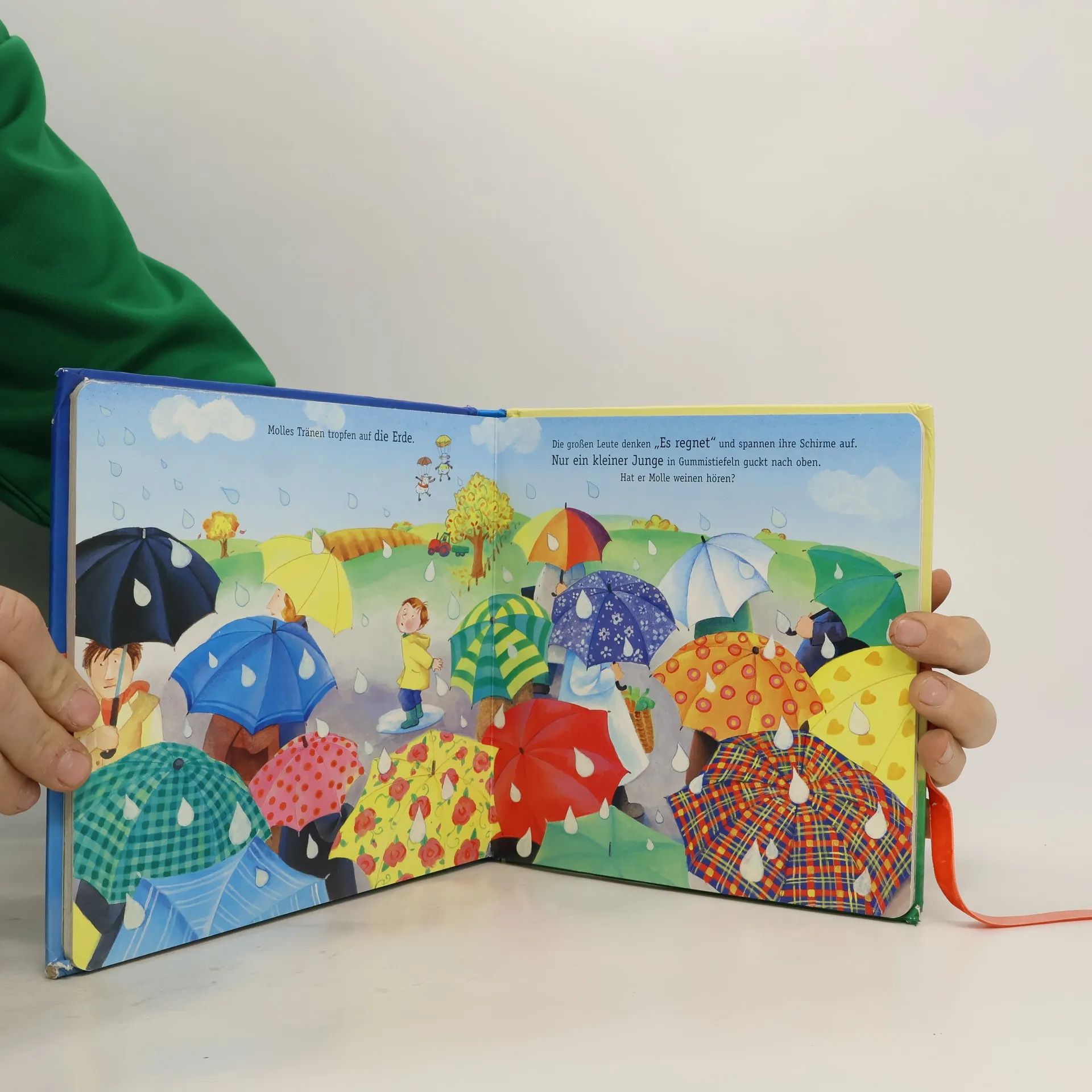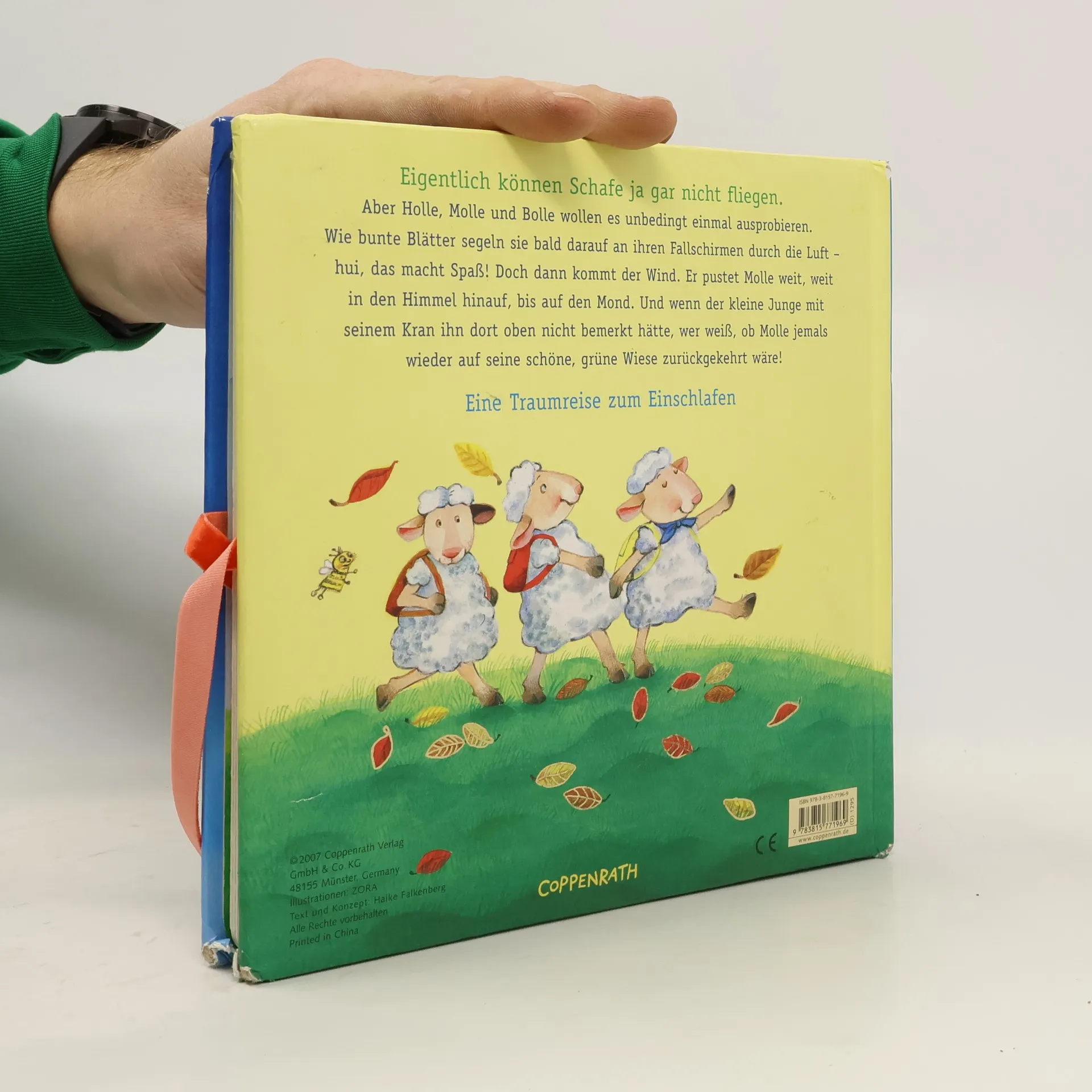 Eigentlich können Schafe ja gar nicht fliegen. Aber Holle, Molle und Bolle wollen es unbedingt einmal ausprobieren. Wie bunte Blätter segeln sie bald darauf an ihren Fallschirmen durch die Luft - hui, das macht Spaß! Doch dann kommt der Wind. Er pustet Molle weit, weit weg in den Himmel hinauf, bis zum Mond. Wenn der kleine Junge mit seinem Kran ihn dort oben nicht bemerkt hätte, wer weiß, ob Molle jemals wieder auf seine schöne, grüne Wiese zurückgekehrt wäre!