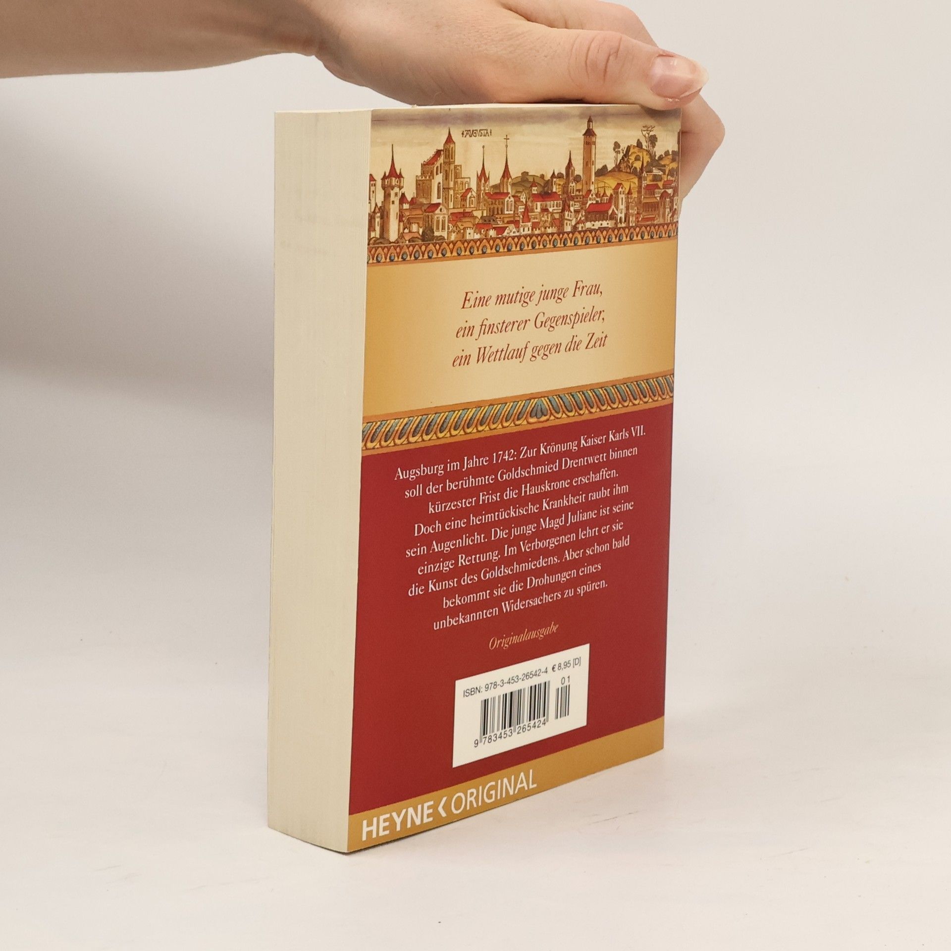 Eine mutige junge Frau, ein finsterer Gegner, ein gefährlicher Weg Augsburg im Jahre 1742: Zur Krönung Kaiser Karls VII. soll der berühmte Goldschmied Drentwett binnen kürzester Frist die Hauskrone erschaffen. Doch eine heimtückische Krankheit raubt ihm sein Augenlicht. Die junge Magd Juliane ist seine einzige Rettung. Im Verborgenen lehrt er sie die Kunst des Goldschmiedens. Aber schon bald bekommt sie die Drohungen eines unbekannten Widersachers zu spüren. • Ein historischer Roman der Extraklasse. Atmosphärisch, üppig, lebendig • Mit Kartenmaterial, historischen Abbildungen und Glossar