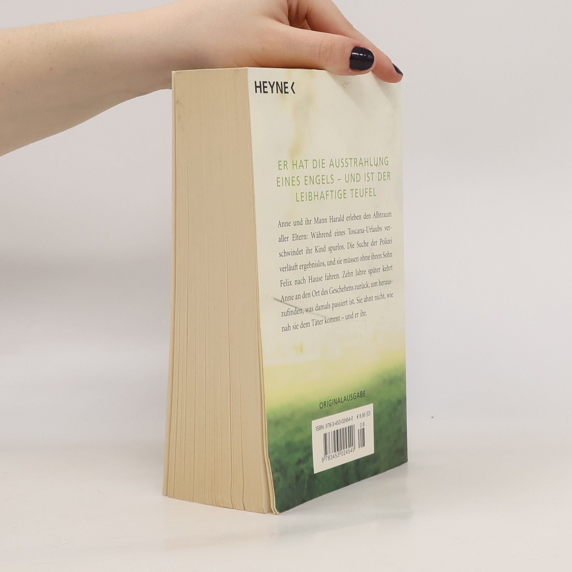 Es geschieht am helllichten Tag Anne und ihr Mann Harald erleben den Albtraum aller Eltern: Während eines Toscana-Urlaubs verschwindet ihr Kind beim Spielen spurlos. Die Suche der Polizei verläuft ergebnislos, und sie müssen ohne ihren Sohn nach Hause fahren. Zehn Jahre später kehrt Anne an den Ort des Geschehens zurück, um herauszufinden, was damals passiert ist. Sie ahnt nicht, wie nah sie dem Täter kommt – und er ihr. Ein Roman, der einem zuweilen den Hals abschnürt, so schrecklich realistisch ist die Geschichte.