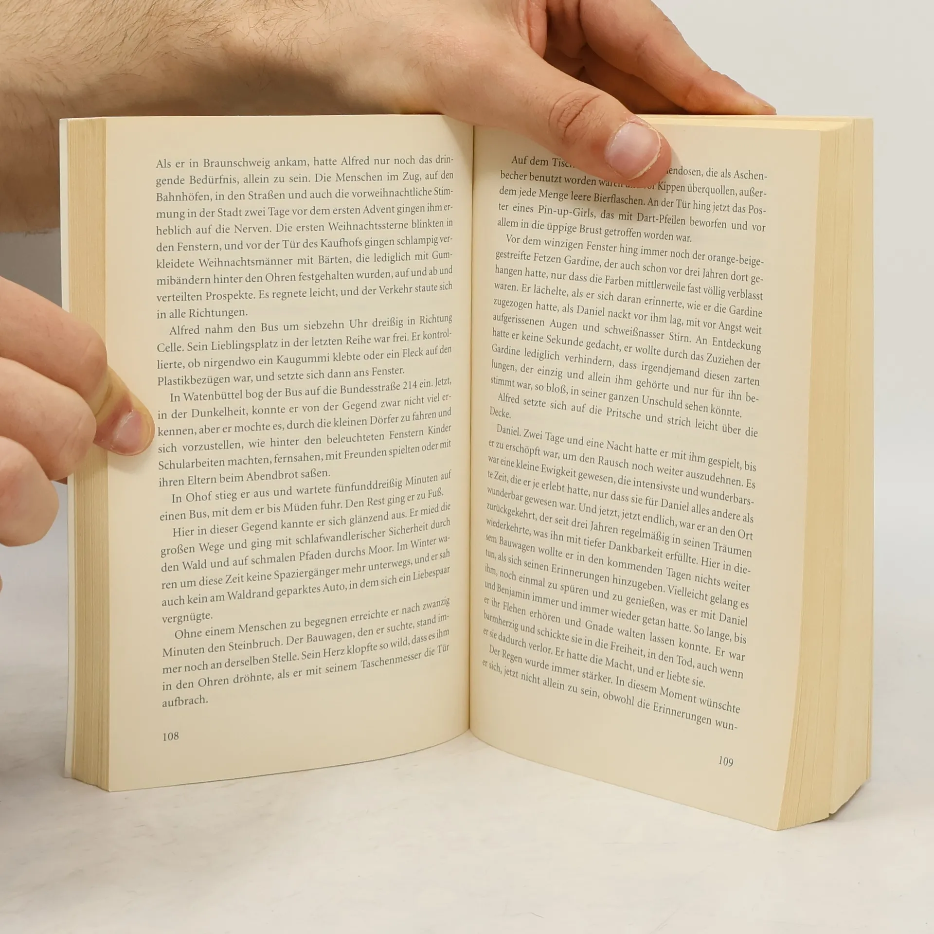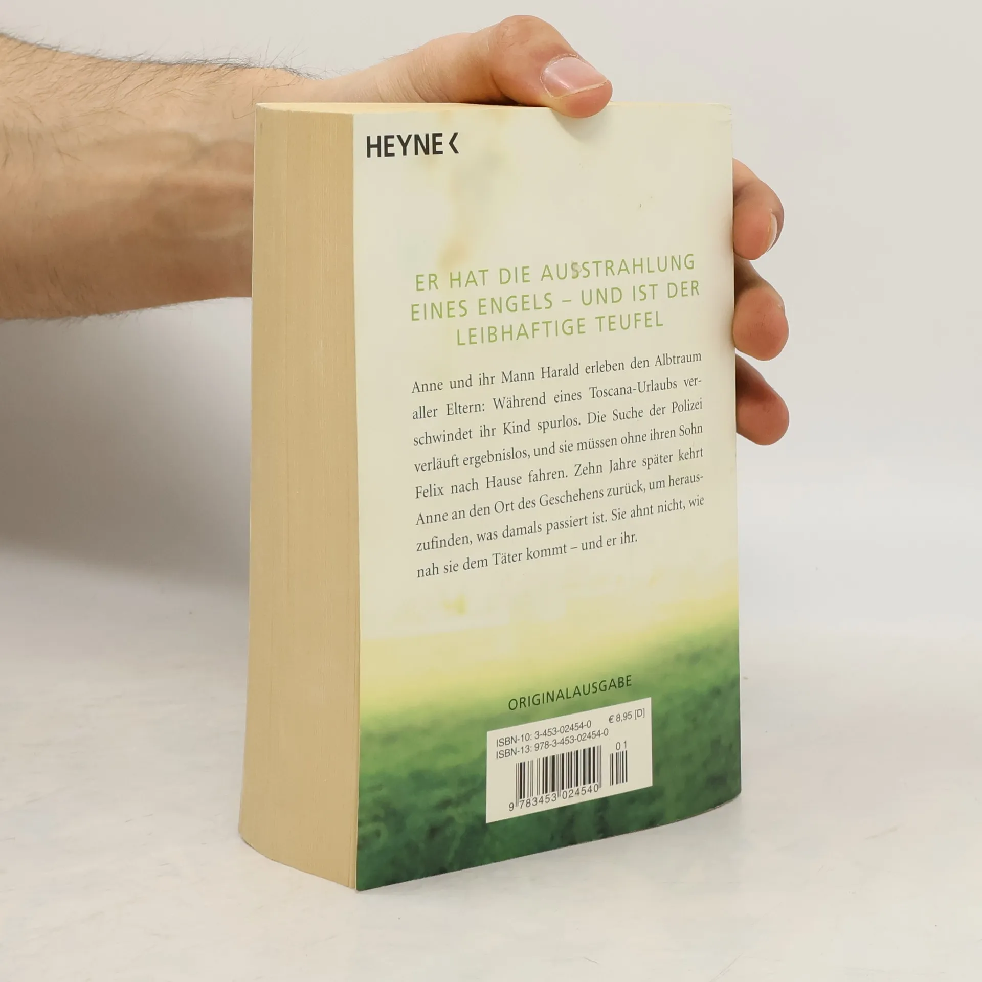Es geschieht am helllichten Tag Anne und ihr Mann Harald erleben den Albtraum aller Eltern: Während eines Toscana-Urlaubs verschwindet ihr Kind beim Spielen spurlos. Die Suche der Polizei verläuft ergebnislos, und sie müssen ohne ihren Sohn nach Hause fahren. Zehn Jahre später kehrt Anne an den Ort des Geschehens zurück, um herauszufinden, was damals passiert ist. Sie ahnt nicht, wie nah sie dem Täter kommt – und er ihr. Ein Roman, der einem zuweilen den Hals abschnürt, so schrecklich realistisch ist die Geschichte.