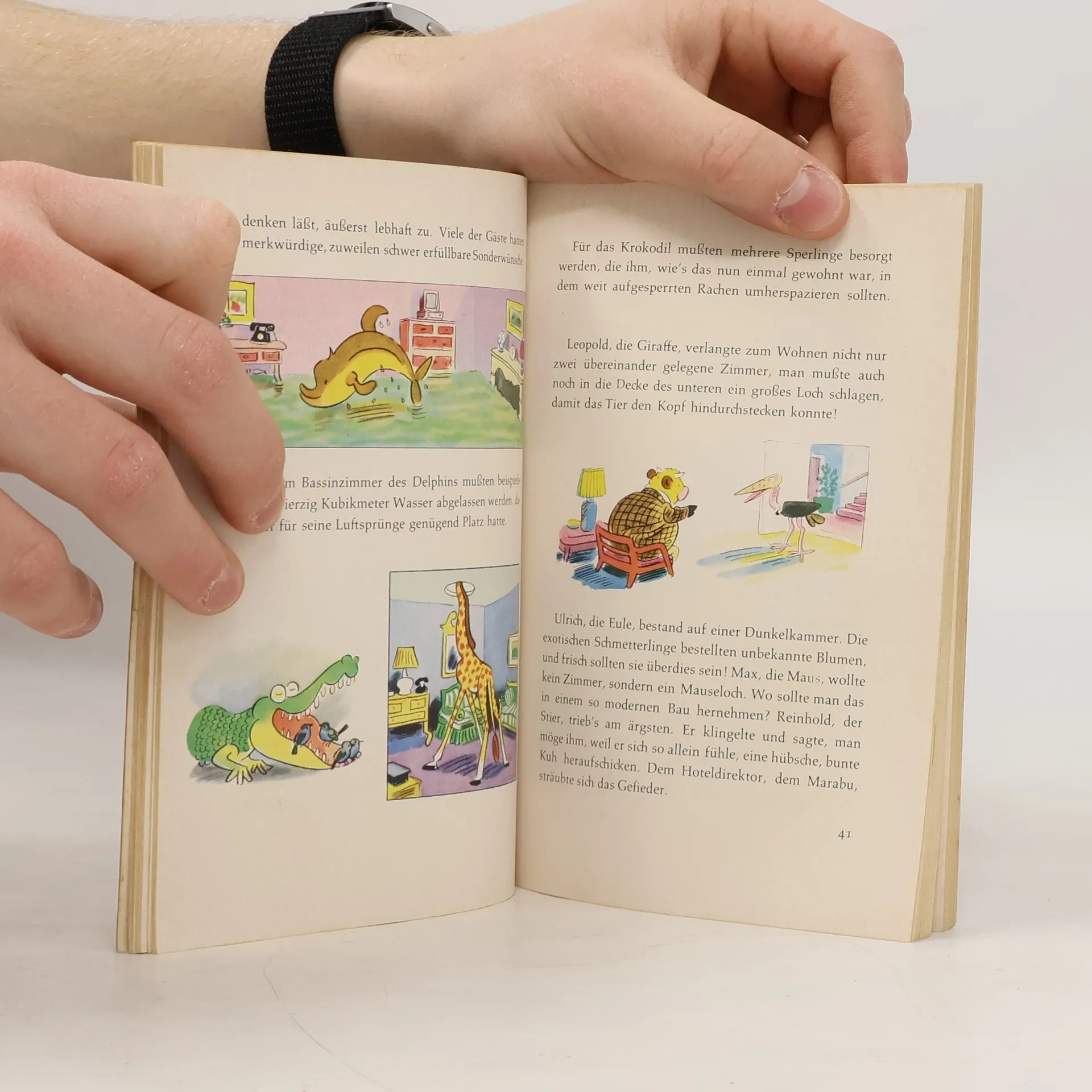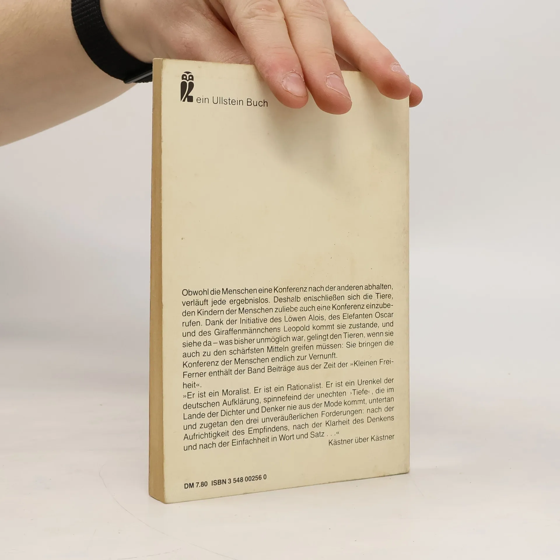 Wenn sich Löwe Alois mit Oskar, dem Elefanten, und der Giraffe Leopold zum Abendschoppen am Tschadsee trifft, kommt über kurz oder lang die Sprache auf die Menschen, und über die ist man schnell einer Meinung: Schreckliche Leute sind das, die nichts anderes zustande bringen als Kriege, Revolutionen und Hungersnöte. Die erste "Konferenz der Tiere" wird einberufen, um den Frieden unter den Menschen durchzusetzen. (Quelle: Verzeichnis ZKL).