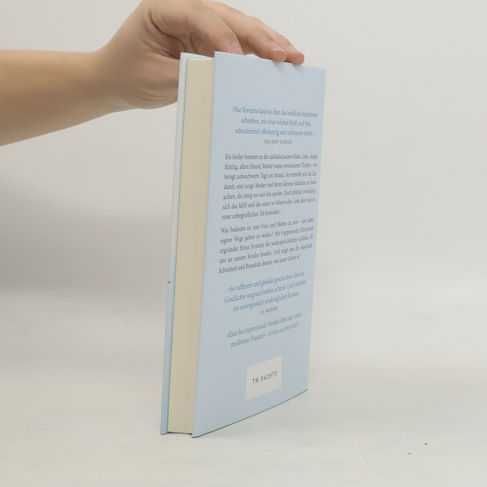 Leda ist fast fünfzig, geschieden, sie unterrichtet Englisch an der Universität in Florenz. Die erwachsenen Töchter sind jetzt beim Vater in Kanada, und Leda muss sich eingestehen, dass sie statt der erwarteten Sehnsucht vor allem Erleichterung empfindet. Den heißen Sommer verbringt sie in einem süditalienischen Küstenort: Bücher, Sonne, das Meer, was könnte friedlicher sein? Am Strand macht sich neben ihr allerdings eine übermütig lärmende neapolitanische Großfamilie breit, darunter eine noch junge Mutter und deren kleine Tochter. Leda beobachtet die beiden über Tage, zunächst fasziniert, wohlwollend. Allmählich aber schlägt ihre Stimmung um, irgendwann folgt sie einem Impuls und tut dem kleinen Mädchen und der Familie etwas Unbegreifliches an. Und wird selber heimgesucht, von lange verdrängten Erinnerungen – an gravierende Entscheidungen, die sie zu treffen hatte, ganz zum Leidwesen ihrer eigenen Töchter ... Was bedeutet es, eine Frau und Mutter zu sein? Mit frappierender Ehrlichkeit ergründet Elena Ferrante die widersprüchlichen Gefühle, die uns an unsere Kinder binden.