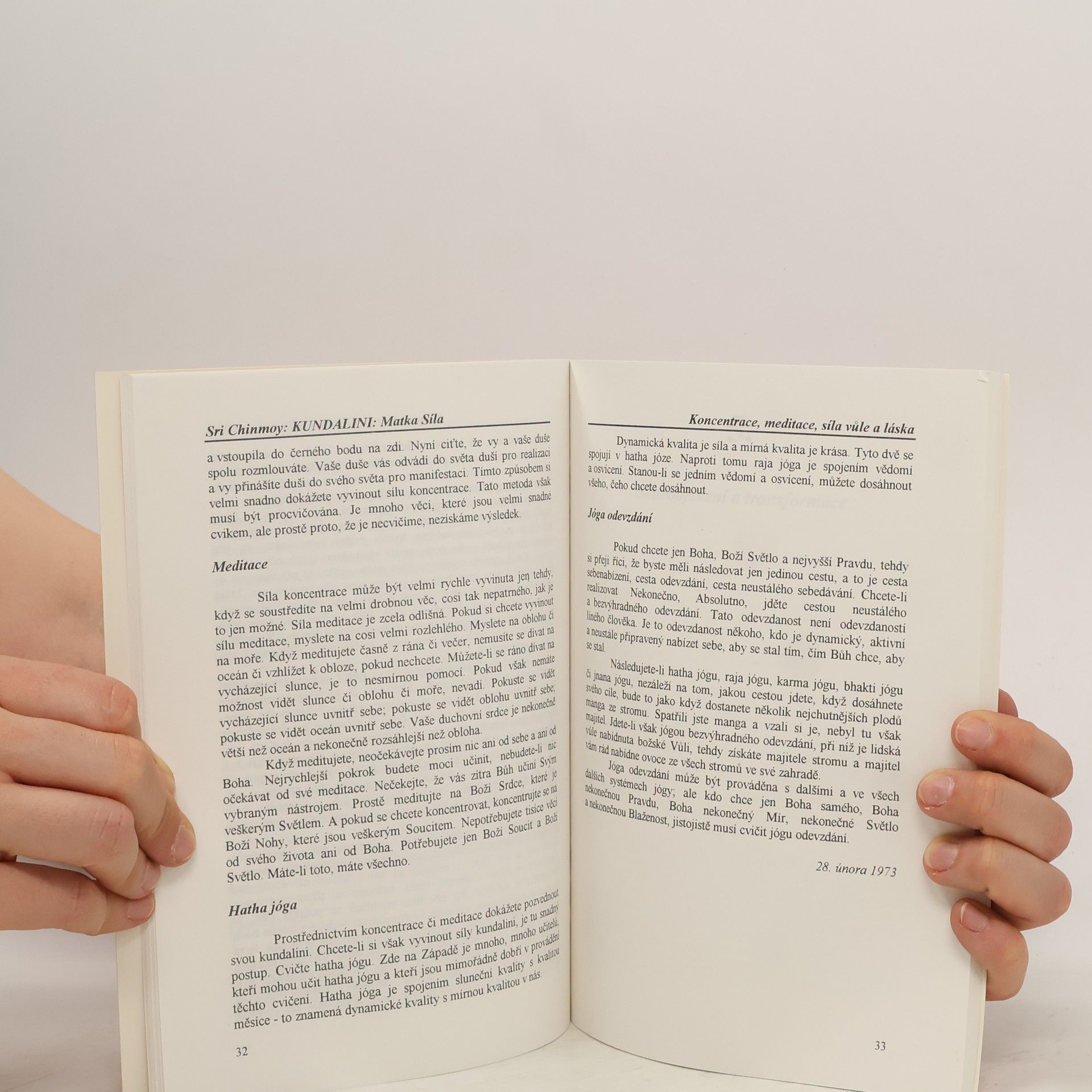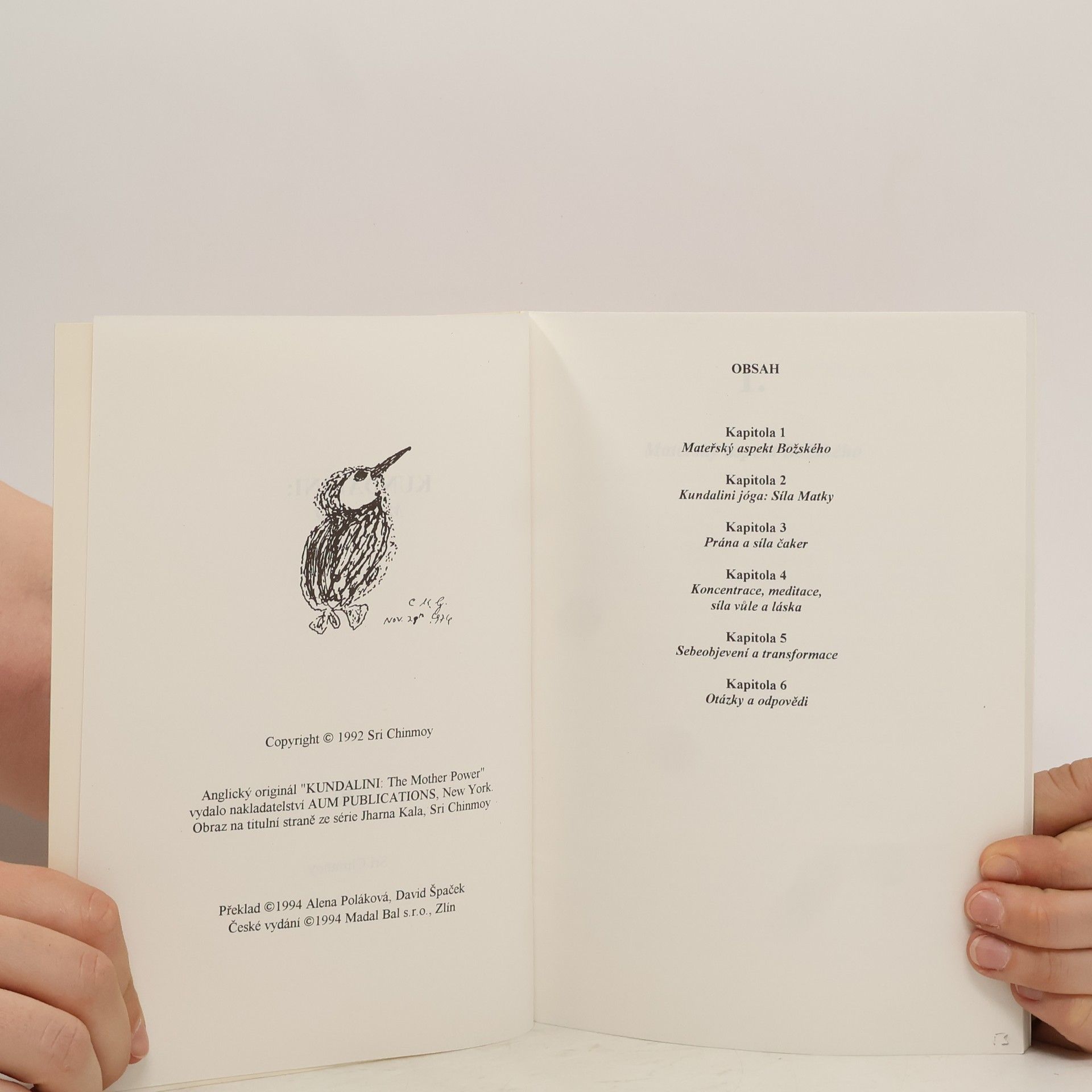 V této knize autor objasňuje některé techniky k probuzení energie kundalini a čaker. Radí, jak se vyhnout úskalím, a hovoří o okultních silách, které přicházejí s otevřením čaker. Uvnitř najdete: Mateřský aspekt božského. Prána a síla čaker. Koncentrace, meditace, síla vůle a láska. Sebepoznání a přeměna. Sri Chinmoy byl v únoru a březnu 1973 pozván dr. Jamesem Carsem, vedoucím Katedry náboženských studií Newyorské university, aby zde měl řadu přednášek o kundalini józe. Čtyři kapitoly v této knize jsou přepisem těchto přednášek.
