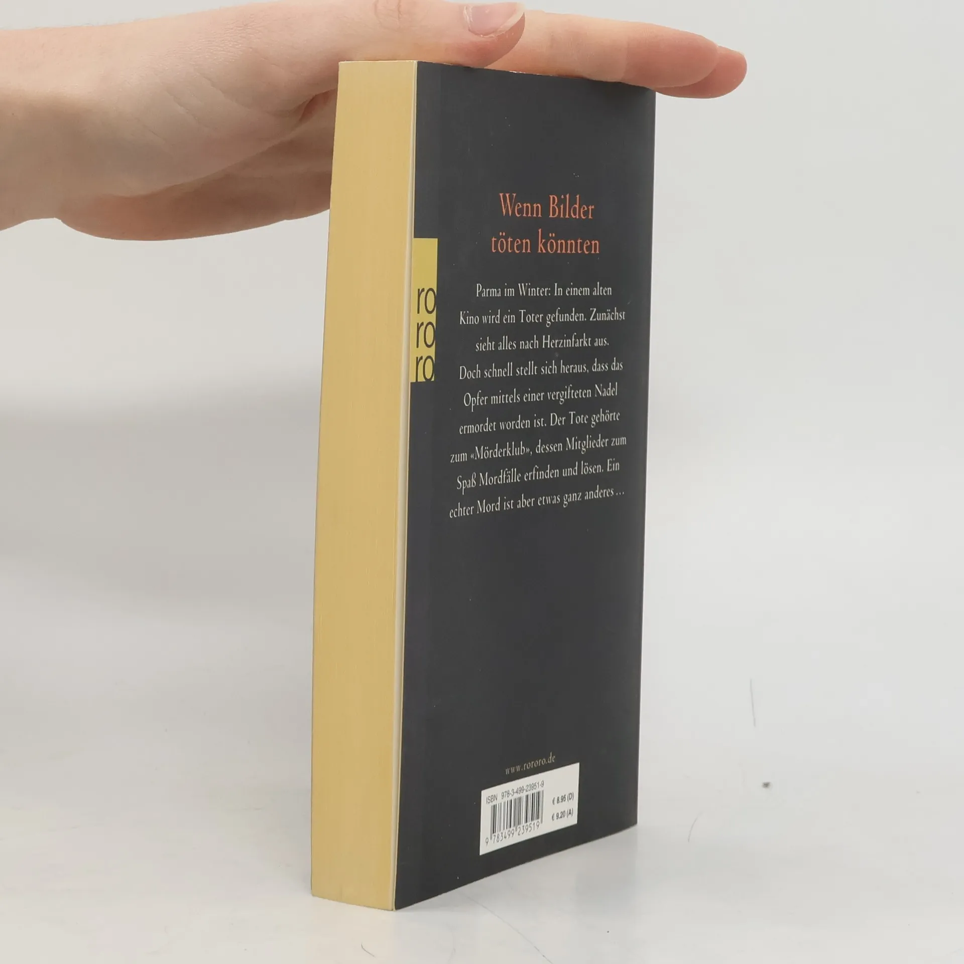 Wenn Bilder töten könntenParma im Winter: In einem alten Kino wird ein Toter gefunden. Zunächst sieht alles nach Herzinfarkt aus. Doch schnell stellt sich heraus, dass das Opfer mittels einer vergifteten Nadel ermordet worden ist. Der Tote gehörte zum „Mörderklub“, dessen Mitglieder zum Spaß Mordfälle erfinden und lösen. Ein echter Mord ist aber etwas ganz anderes…