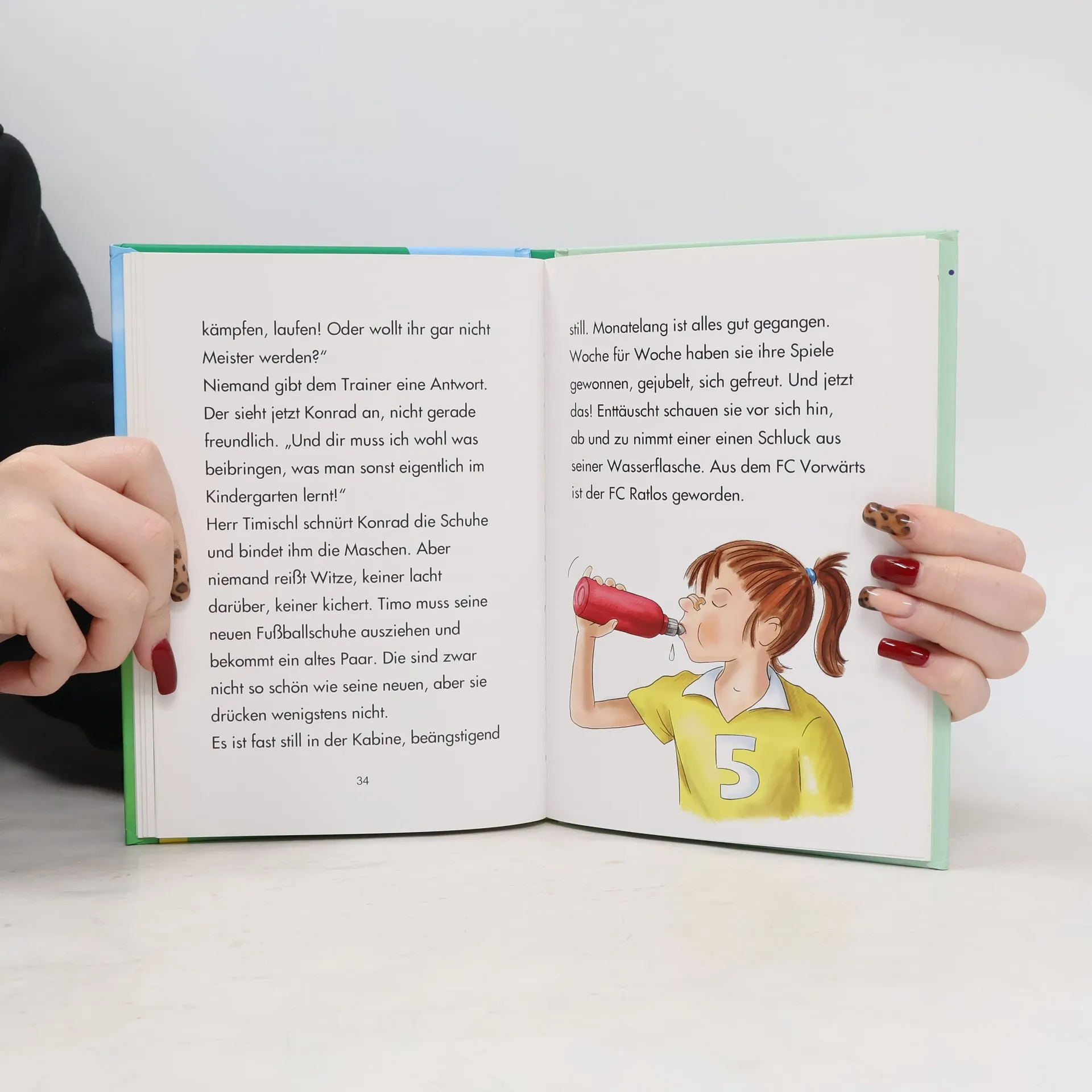 Wenn Konrad eins kann, dann Fußballspielen. Er kann dribbeln, rechts und links schießen und mit dem Ball jonglieren ... Wenn Konrad eins nicht kann, dann Maschen binden. Kein Wunder, dass ihn die Schuhbänder an seinen Fußballschuhen nerven. Besonders im entscheidenden Spiel gegen den FC Ketchup! In Druckschrift geschrieben. Die Texterfassung wird von vierfärbigen Bildern unterstützt.