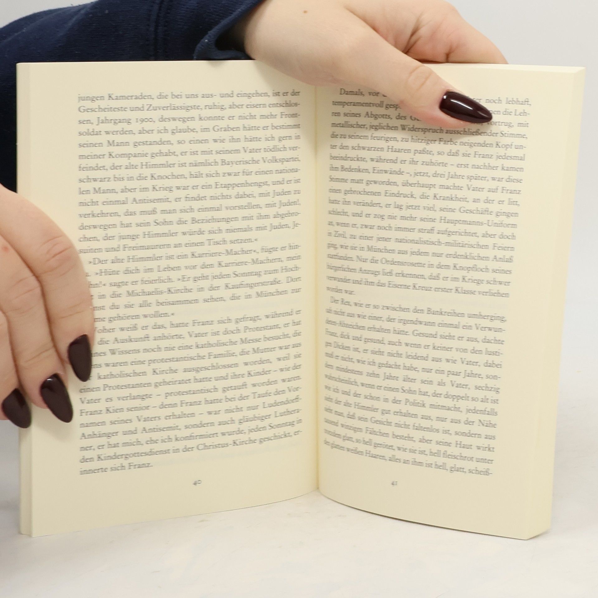 In seinem letzten vollendeten Werk, 1980 postum erschienen, kehrt Alfred Andersch in seine Jugend zurück. München, Mai 1928. Der Schüler Franz Kien erleidet eine Unterrichtsstunde bei Herrn Himmler, Direktor des Wittelsbacher Gymnasiums, Altphilologe, großbürgerlicher Katholik und Vater des späteren Reichsführers der SS. Im Nachwort stellt der Autor die Frage: »Schützt Humanismus denn vor gar nichts?« "