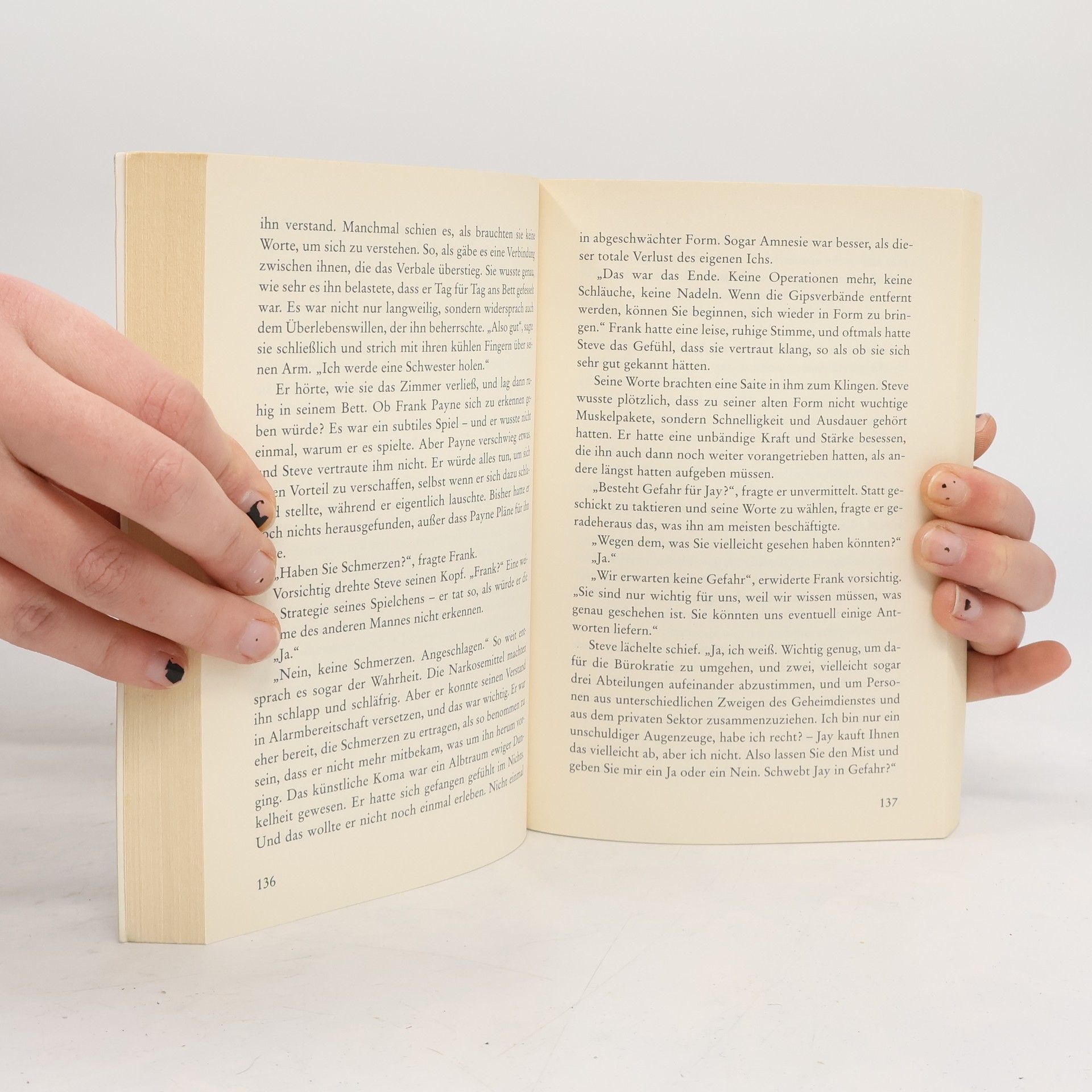 Tag für Tag sitzt Jay am Krankenbett ihres Exmannes. Nur auf sie reagiert der Schwerverletzte. Doch als er endlich aus dem Koma erwacht und sie zum ersten Mal anblickt, gerät Jays Welt ins Wanken. Denn diese goldenen Augen gehören nicht Steve, sondern einem völlig Fremden! Aber woher kam die Verbundenheit zwischen ihnen, wenn sie wieder und wieder seine Hand gehalten hat? Und wer trachtet ihm nach dem Leben? Der Fremde ist völlig ahnungslos, denn er hat bei dem Anschlag sein Gedächtnis verloren – weshalb Jay einen fatalen Fehler begehen kann: Statt dem Mann zu gestehen, dass sie nicht weiß, wer er ist, schweigt sie. Und die tödliche Gefahr nimmt ungehindert ihren Lauf … „Linda Howard schreibt unwiderstehlich kraftvoll.“ Publishers Weekly „Erst im Morgengrauen konnte ich dieses Buch aus der Hand legen. Und es war jede Sekunde wert.“ www. bellaonline. com