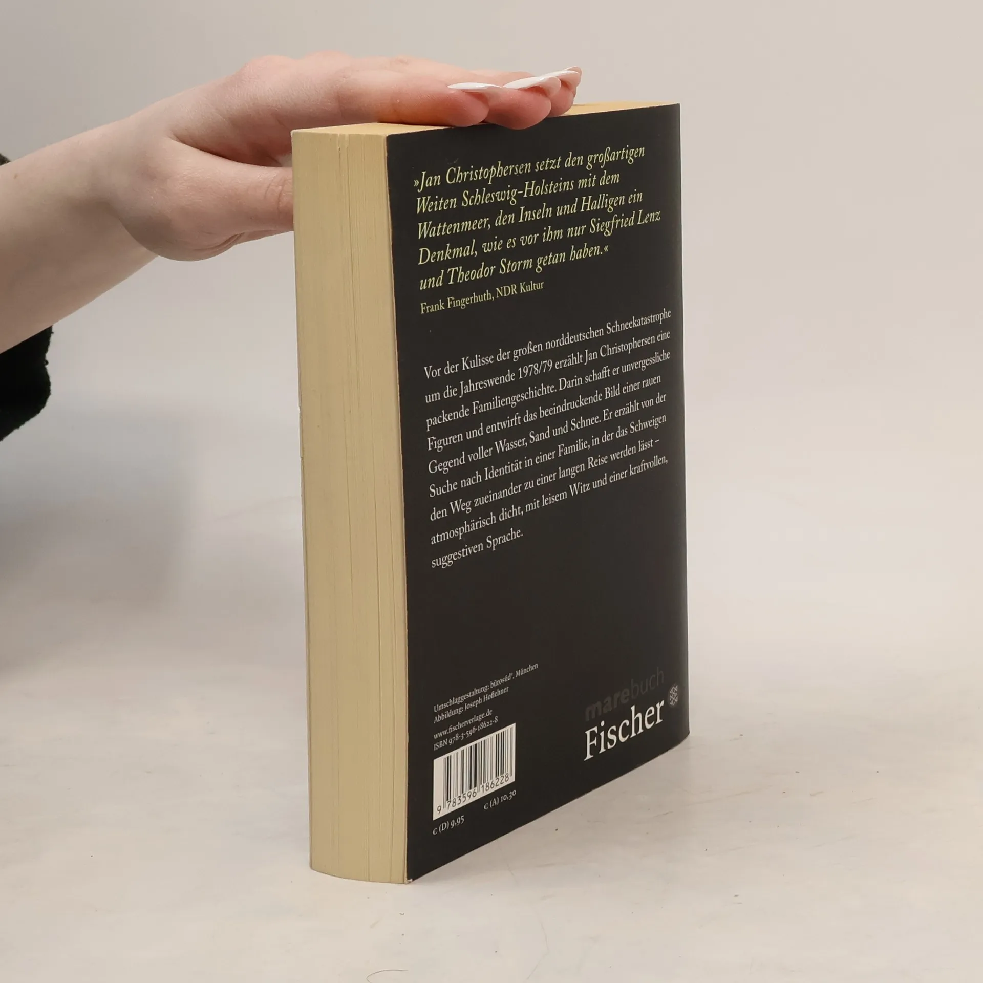 Vor der Kulisse der großen norddeutschen Schneekatastrophe um die Jahreswende 1978/79 erzählt Jan Christophersen eine packende Familiengeschichte. Darin schafft er unvergessliche Figuren und entwirft das beeindruckende Bild einer rauen Gegend voller Wasser, Sand und Schnee. Er erzählt von der Suche nach Identität in einer Familie, in der das Schweigen den Weg zueinander zu einer langen Reise werden lässt - atmosphärisch dicht, mit leisem Witz und einer kraftvollen, suggestiven Sprache. Ausgezeichnet mit dem Debütpreis des Buddenbrookhauses und nominiert für den Franz-Tumler-Preis
