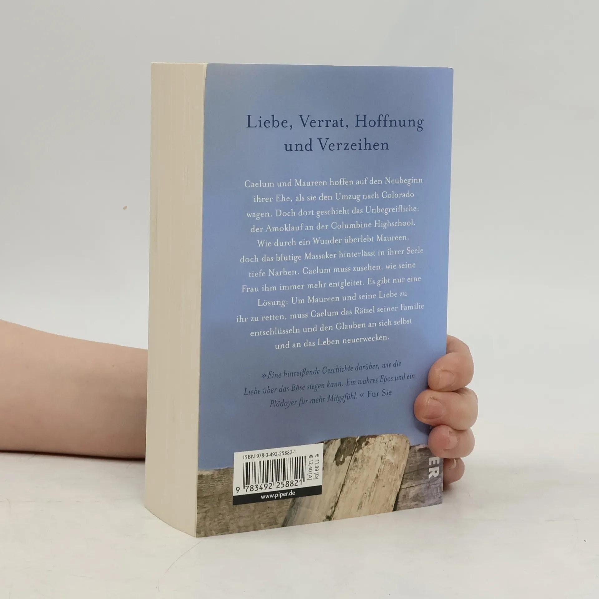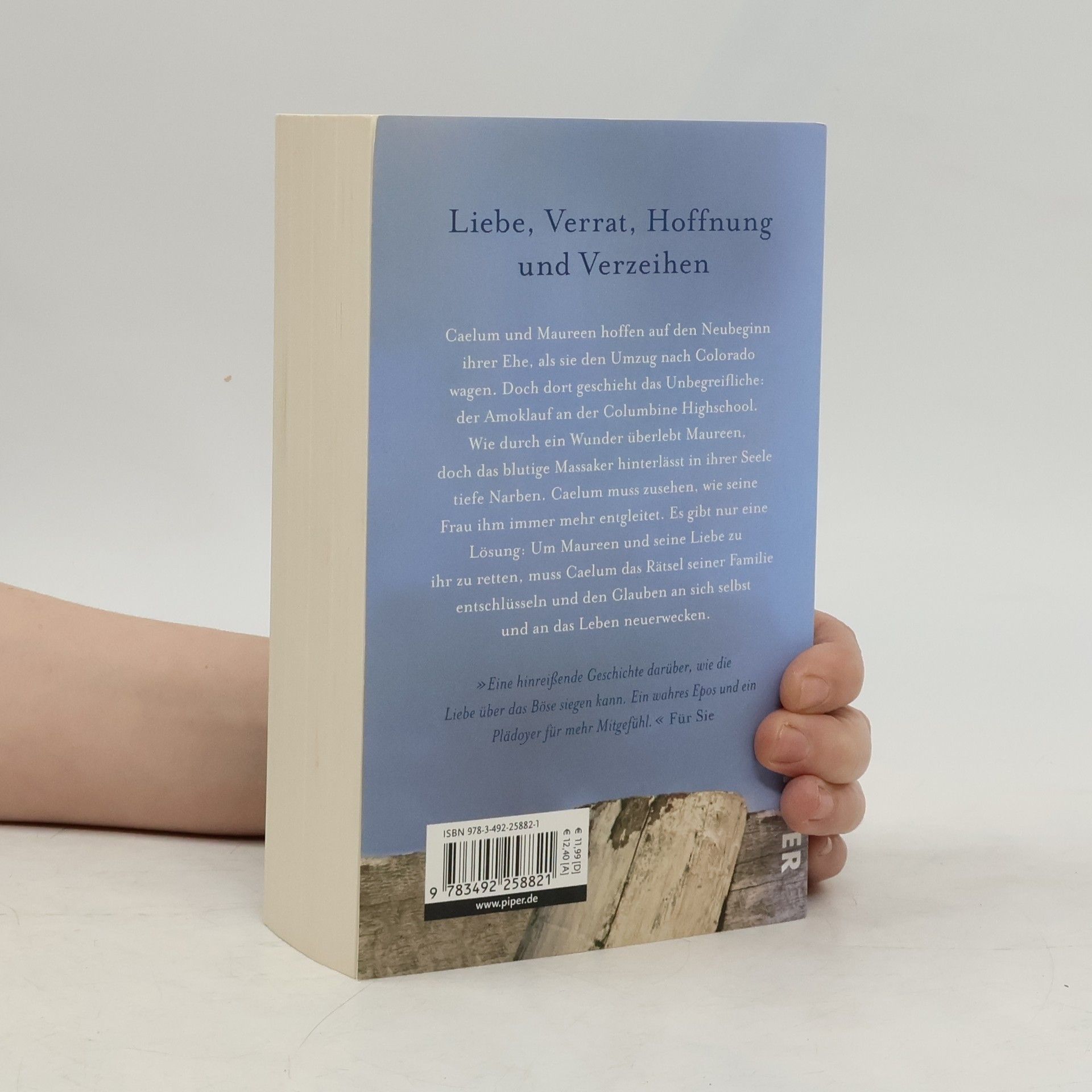 Caelum und Maureen hoffen auf den Neubeginn ihrer Ehe, als sie den Umzug nach Colorado wagen. Doch dort geschieht das Unbegreifliche: der Amoklauf an der Columbine Highschool. Wie durch ein Wunder überlebt Maureen, doch das blutige Massaker hinterlässt in ihrer Seele tiefe Narben. Caelum muss zusehen, wie seine Frau ihm immer mehr entgleitet. Es gibt nur eine Lösung: Um Maureen und seine Liebe zu ihr zu retten, muss Caelum das Rätsel seiner Familie entschlüsseln und den Glauben an sich selbst und an das Leben neuerwecken.