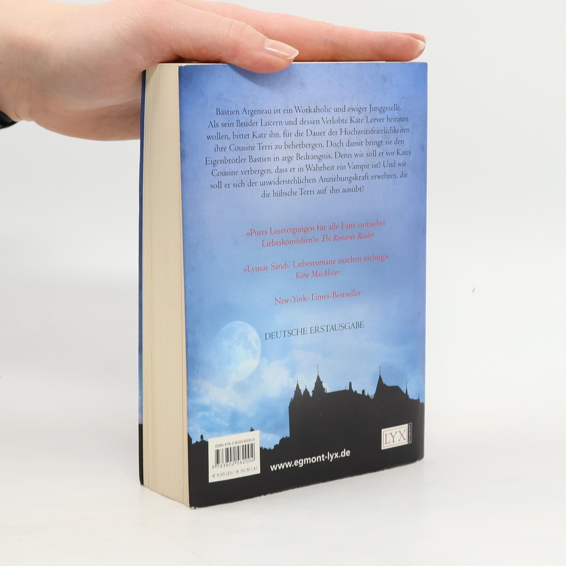 Als ewiger Junggeselle genießt Bastien Argeneau seine Freiheit. Besonders seit sein Bruder Lucern mit seiner Verlobten Kate Leever zusammengezogen ist und er das Penthouse der Familie ganz für sich allein hat. Als Kate ihn bittet, für die Dauer der Hochzeit ihre Cousine Terri zu beherbergen, gerät der Eigenbrötler Bastien jedoch in Bedrängnis. Wie soll er vor Kates Cousine verbergen, dass er in Wahrheit ein Vampir ist? Und noch entscheidender: Wie kann er sich der unwiderstehlichen Anziehungskraft erwehren, die die hübsche Terri auf ihn ausübt? „Eine witzige, verrückte Geschichte ... Leserinnen von Vampirromanen werden sich vor Lachen kaum halten können. Und die Liebesszenen sind ein erotischer Hochgenuss!“ Publishers Weekly