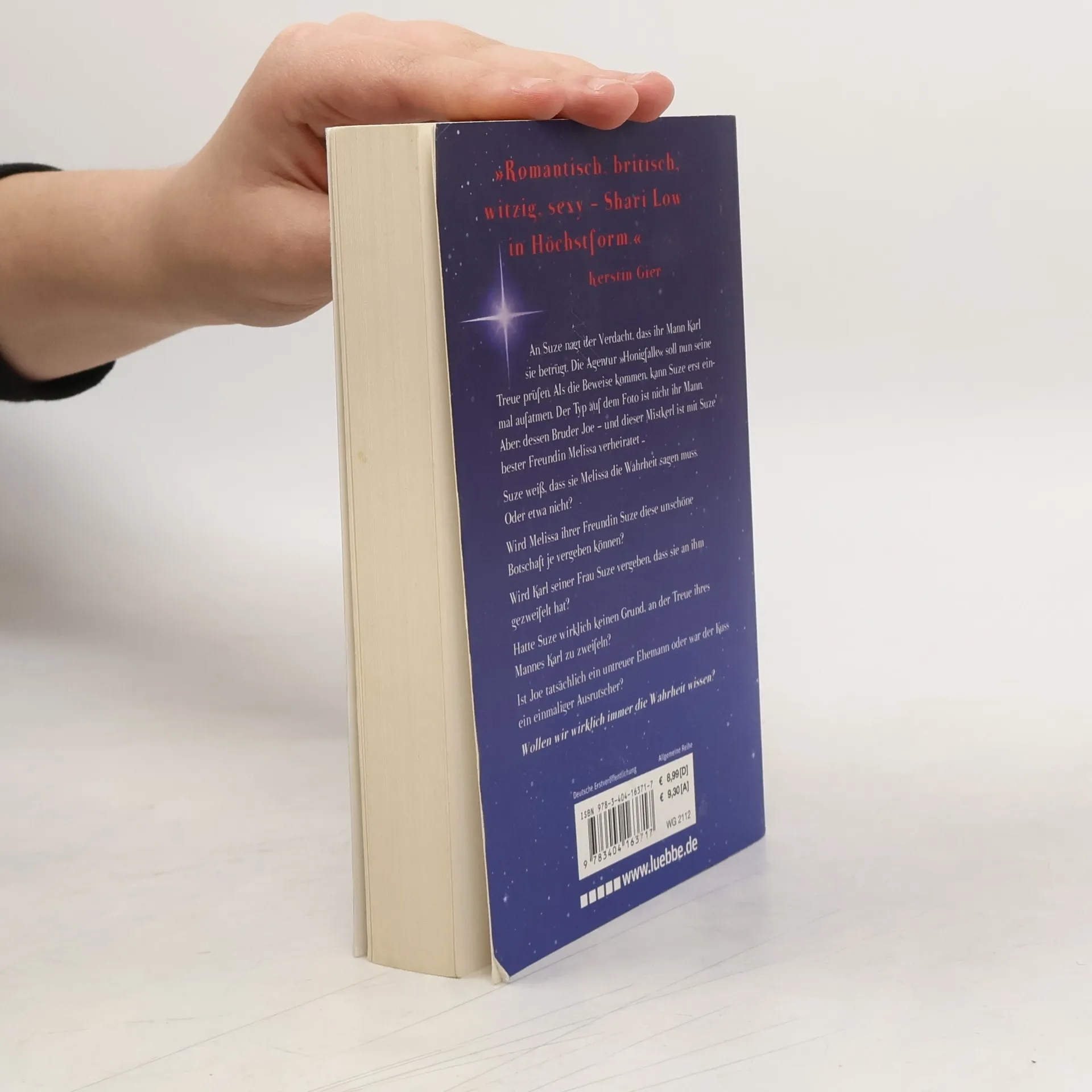 An Suze nagt der Verdacht, dass ihr Mann Karl sie betrügt. Die Agentur 'Honigfalle' soll nun seine Treue prüfen. Als die Beweise kommen, kann Suze erst einmal aufatmen. Der Typ auf dem Foto ist nicht ihr Mann. Aber: dessen Bruder Joe - und dieser Mistkerl ist mit Suze' bester Freundin Melissa verheiratet. Suze weiß, dass sie Melissa die Wahrheit sagen muss. Oder etwa nicht? Wird Melissa ihrer Freundin Suze diese unschöne Botschaft je vergeben können? Wird Karl seiner Frau Suze vergeben, dass sie an ihm gezweifelt hat? Hatte Suze wirklich keinen Grund, an der Treue ihres Mannes Karl zu zweifeln? Ist Joe wirklich ein untreuer Ehemann oder war der Kuss ein einmaliger Ausrutscher? Wollen wir wirklich immer die Wahrheit wissen?
