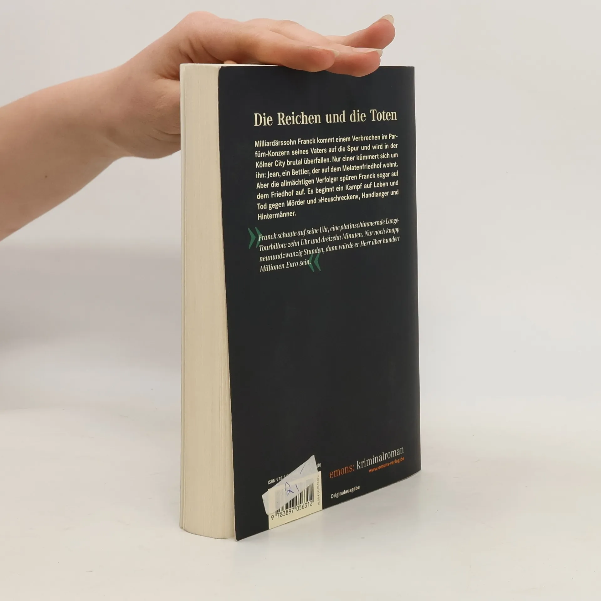 Milliardärssohn Franck kommt einem Verbrechen im Parfüm-Konzern seines Vaters auf die Spur und wird in der Kölner City brutal überfallen. Nur einer kümmert sich um ihn: Jean, ein Bettler, der auf dem Melatenfriedhof wohnt. Aber die allmächtigen Verfolger spüren Franck sogar auf dem Friedhof auf. Es beginnt ein Kampf auf Leben und Tod gegen Mörder und 'Heuschrecken', Handlanger und Hintermänner.