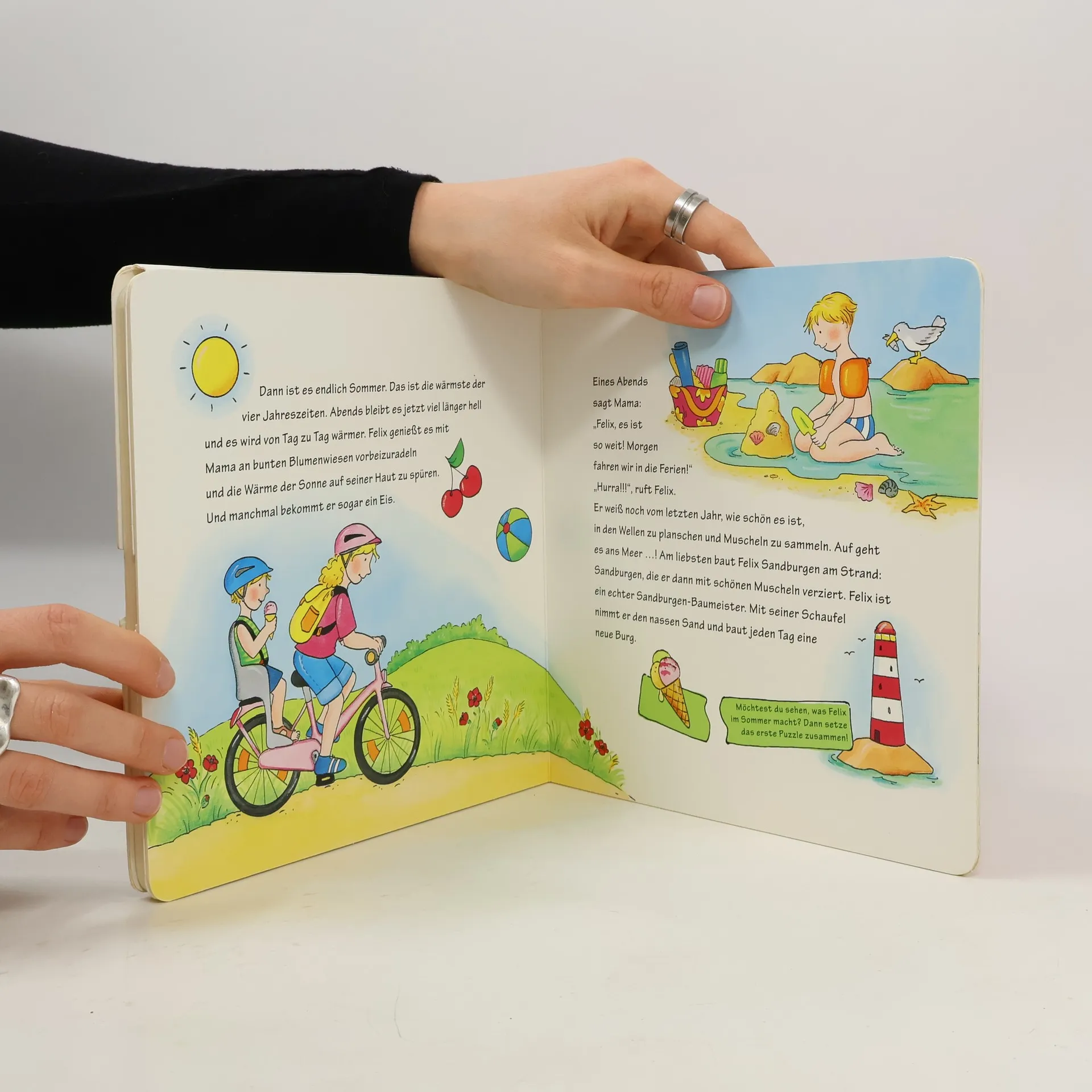 Wann fallen die Blätter von den Bäumen? Und in welcher Jahreszeit kann Felix einen Schneemann bauen? Fröhliche Illustrationen und anschauliche Erklärungen geben Antwort auf diese Fragen. Mit den jeweils drei beigelegten Lagenpuzzles haben die kleinen Leser zudem die Möglichkeit, Schicht für Schicht noch einmal nachzuvollziehen. Spielerisch wird so erstes Wissen erworben und die Feinmotorik geschult. - Buch und Puzzle in einem - Vermittelt erstes Wissen - Fördert Verständnis für Abläufe und Zusammenhänge Ab 36 Monaten!