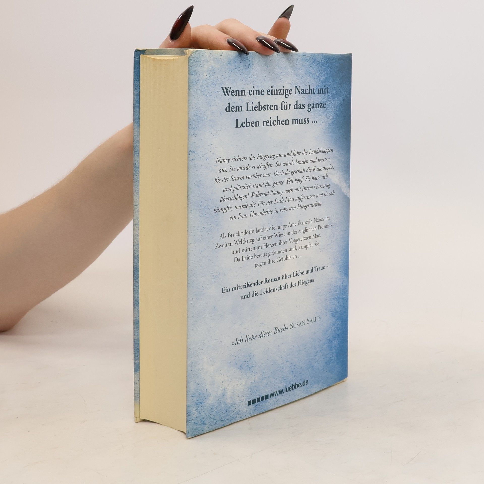 Wenn eine einzige Nacht mit dem Liebsten für das ganze Leben reichen muss. Nancy richtete das Flugzeug aus und fuhr die Landeklappen aus. Sie würde es schaffen. Sie würde landen und warten, bis der Sturm vorüber war. Doch da geschah die Katastrophe, und plötzlich stand die ganze Welt kopf: Sie hatte sich überschlagen! Während Nancy noch mit ihrem Gurtzeug kämpfte, wurde die Tür der Puth Moss aufgerissen und sie sah ein Paar Hosenbeine in robusten Fliegerstiefeln. Als Bruchpilotin landet die junge Amerikanerin Nancy im Zweiten Weltkrieg auf einer Wiese in der englischen Provinz ═ und mitten im Herzen ihres Vorgesetzten Mac. Da beide bereits gebunden sind, kämpfen sie gegen ihre Gefühle an. Ein mitreißender Roman über Liebe und Treue ═ und die Leidenschaft des Fliegens