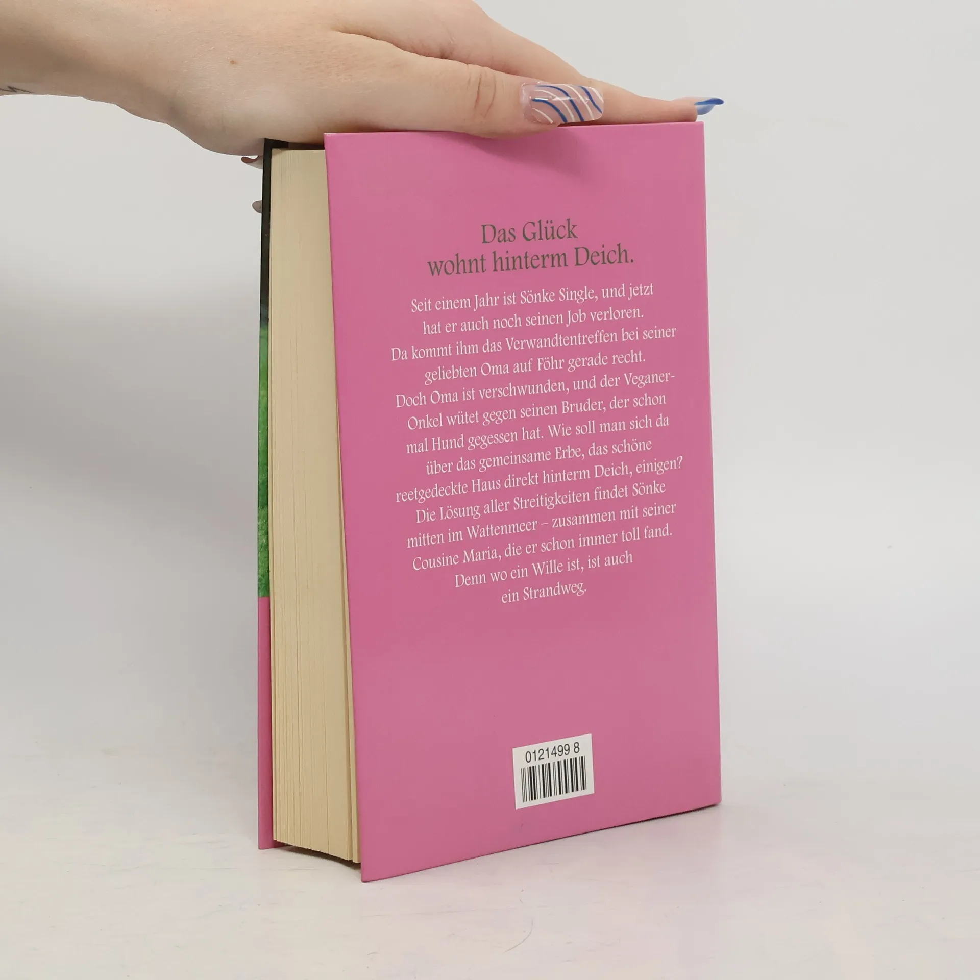 DAS GLÜCK WOHNT HINTERM DEICH. Seit einem Jahr ist Sönke Single, und jetzt hat er auch noch seinen Job verloren. Da kommt ihm das Verwandtentreffen bei seiner geliebten Oma auf Föhr gerade recht. Doch Oma ist verschwunden, und der Veganer-Onkel wütet gegen seinen Bruder, der schon mal Hund gegessen hat. Wie soll man sich da über das gemeinsame Erbe, das schöne reetgedeckte Haus direkt hinterm Deich, einigen? Die Lösung aller Streitigkeiten findet Sönke mitten im Wattenmeer – zusammen mit seiner Cousine Maria, die er schon immer toll fand. Denn wo ein Wille ist, ist auch ein Strandweg. «Einfach richtig nette Sommerlektüre!» (NDR)