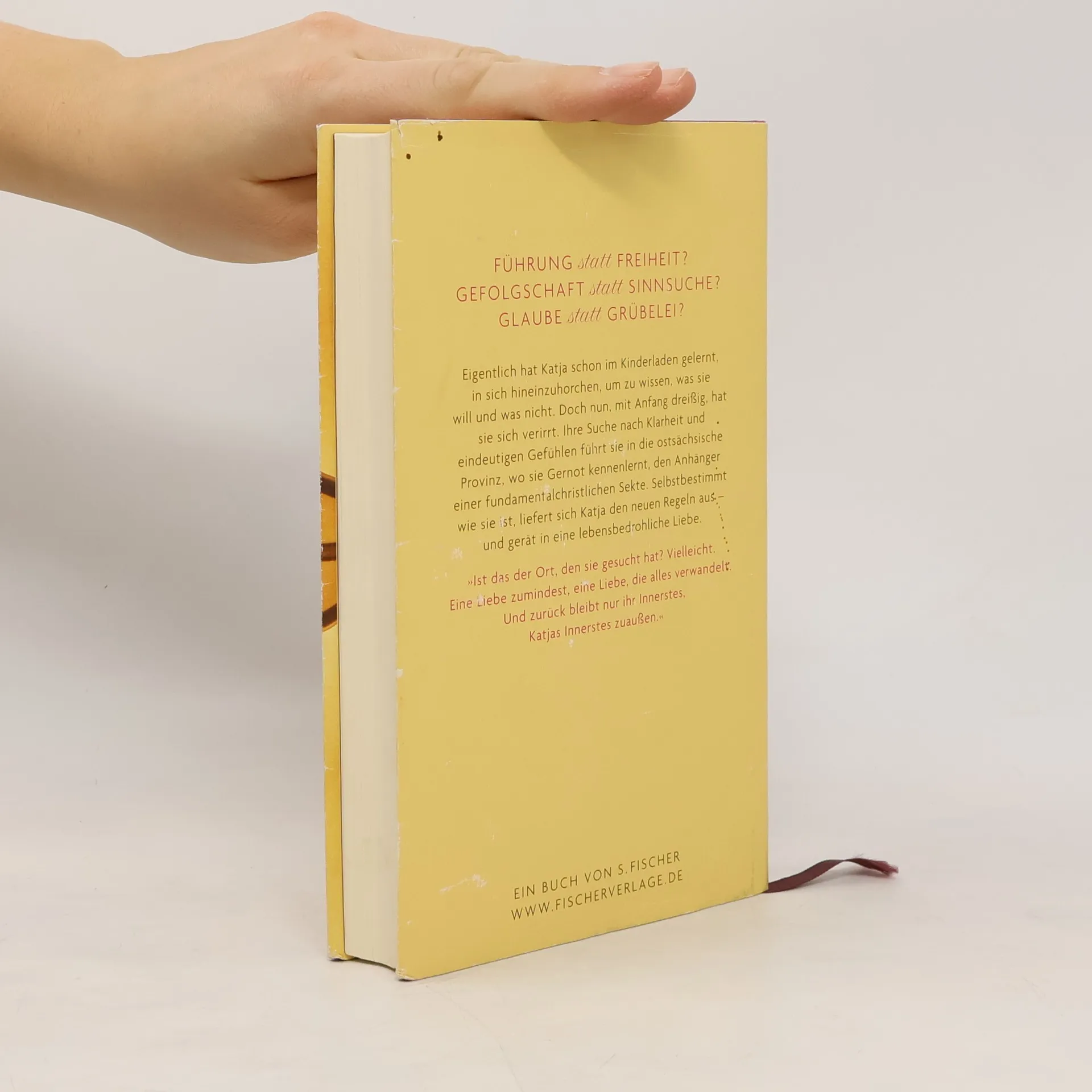 'Ich habe in mich hineingehorcht und entschieden, alle Freiheiten zurückzugeben und mich ganz unserem himmlichen Herrn zu unterwerfen.' Katja Rothenberger, 30, kann sich nicht beklagen – sie hat eine glückliche Kinderladenkindheit, einen umsichtigen Freund, eine Berliner Wohnung mit Holzfußboden und eine gut gegliederte Doktorarbeit. Woher nur kommt ihre Unzufriedenheit? Katja reist in die ostsächsische Kleinstadt, in die Reinhardt, ihr Jugendpfarrer, nach der Wende strafversetzt worden ist – er war ihre erste große Liebe. Dort begegnet sie Gernot, einem Anhänger einer fundamentalchristlichen Sekte, der Katja das bietet, was ihr offenbar in ihrem Leben gefehlt hat: Führung statt Freiheit, Gefolgschaft statt Sinnsuche. Selbstbestimmt wie sie ist, liefert sich Katja den neuen Regeln aus – und gerät in eine lebensbedrohliche Liebe zwischen totaler Hingabe und absoluter Abhängigkeit.