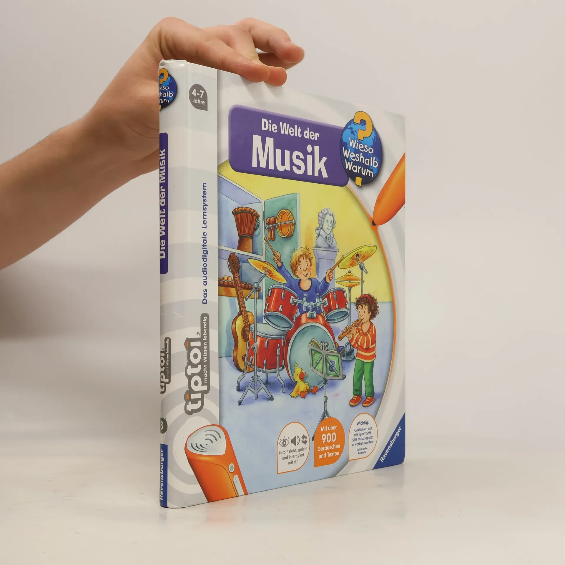 Ohren auf: Willkommen in der Welt der Musik! Dieses Buch steckt voller Musik: vom Basiswissen darüber, wie der Ton in unser Ohr kommt, über die verschiedenen Musikinstrumente bis hin zu der Frage, was Rhythmus ist. Außerdem kann mit dem tiptoi-Stift auf einem Xylophon gespielt und einem richtigen Orchester gelauscht werden. Was macht der Traktor auf dem Feld? Wann kommt die Feuerwehr? Wie groß wird ein Pony? Die interaktive Sachbuchreihe tiptoi Wieso? Weshalb? Warum? beantwortet wichtige Kinderfragen auf Augenhöhe. Auf den liebevoll illustrierten Seiten tauchen die Kinder in eine Welt ein, die durch zahlreiche authentische Geräusche lebendig wird. Das Sachwissen wird altersgerecht erklärt und ist fachlich geprüft. Die Kinder können sich dank der einfachen und intuitiven Nutzung mit dem tiptoi-Stift das Wissen selbst erschließen. Sie lernen, Zusammenhänge zu begreifen und erfahren spannende Informationen über ihren Alltag und ihre Umwelt. Tolle Geschichten, Lieder und unterhaltsame Spiele laden dabei immer wieder zum selbstständigen Entdecken und Erforschen ein. tiptoi-Stift nicht enthalten. Muss separat erworben werden.