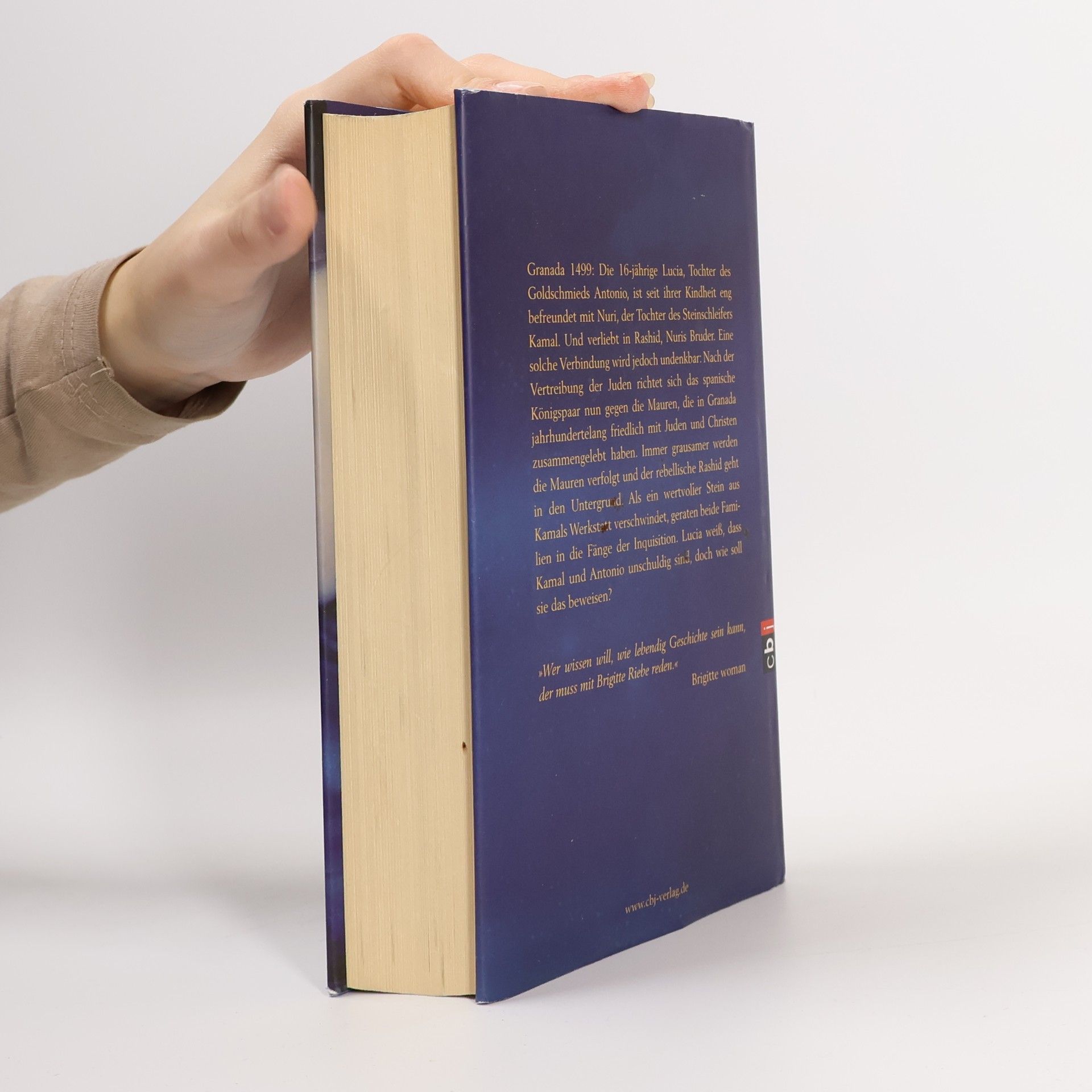 Packender Thriller und mitreißende Liebesgeschichte Granada 1499: Die 16-jährige Lucia, Tochter des Goldschmieds Antonio, ist seit ihrer Kindheit eng befreundet mit Nuri, der Tochter des Steinschleifers Kamal. Und verliebt in Rachid, Nuris Bruder. Eine solche Verbindung wird jedoch undenkbar: Nach der Vertreibung der Juden richtet sich das spanische Königspaar nun gegen die Mauren, die in Granada jahrhundertelang friedlich mit Juden und Christen zusammengelebt haben. Kamal gerät in die Fänge der Inquisition, die ihre Fühler auch nach Antonio ausstreckt. Lucia ist verzweifelt. Da tritt Miguel auf den Plan, ein junger Steinschleifer, der Lucias Gefühle heftig durcheinanderbringt …