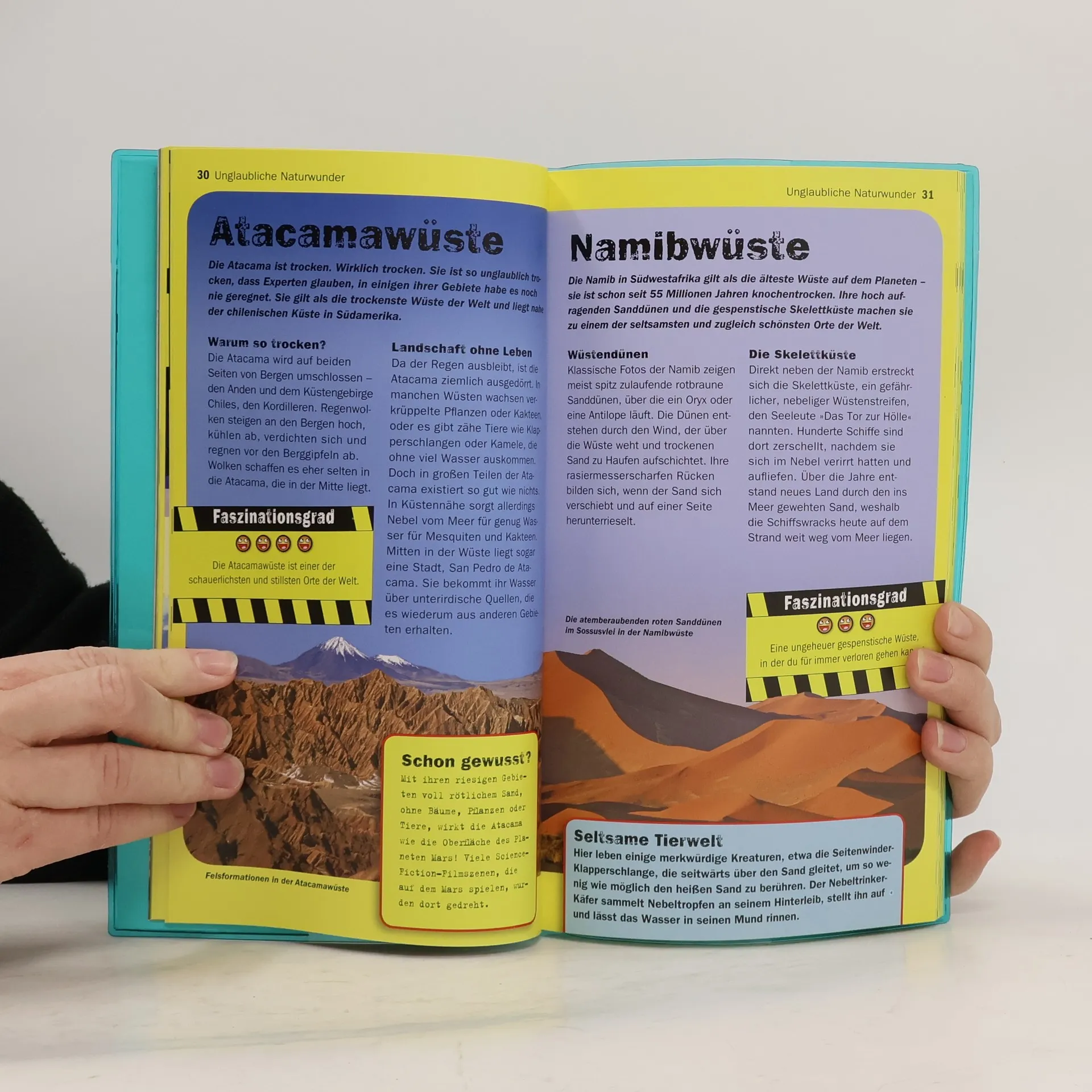 Ob im Wasser, zu Lande, in der Luft oder gar außerirdisch: Mache dich gefasst auf die 100 unglaublichsten Naturwunder und von Menschenhand geschaffenen Werke. Von den größten Kreaturen der Meere geht es über explodierende Vulkane und himmelhohe Wasserfälle bis zu den irrsinnigsten Maschinen; inklusive einer Fahrt in der rasantesten Achterbahn der Welt. Das ist cool, krass, komplett umwerfend – informative Texte und sensationelle Fotos bringen selbst »abgebrühte« Leser zum Staunen!