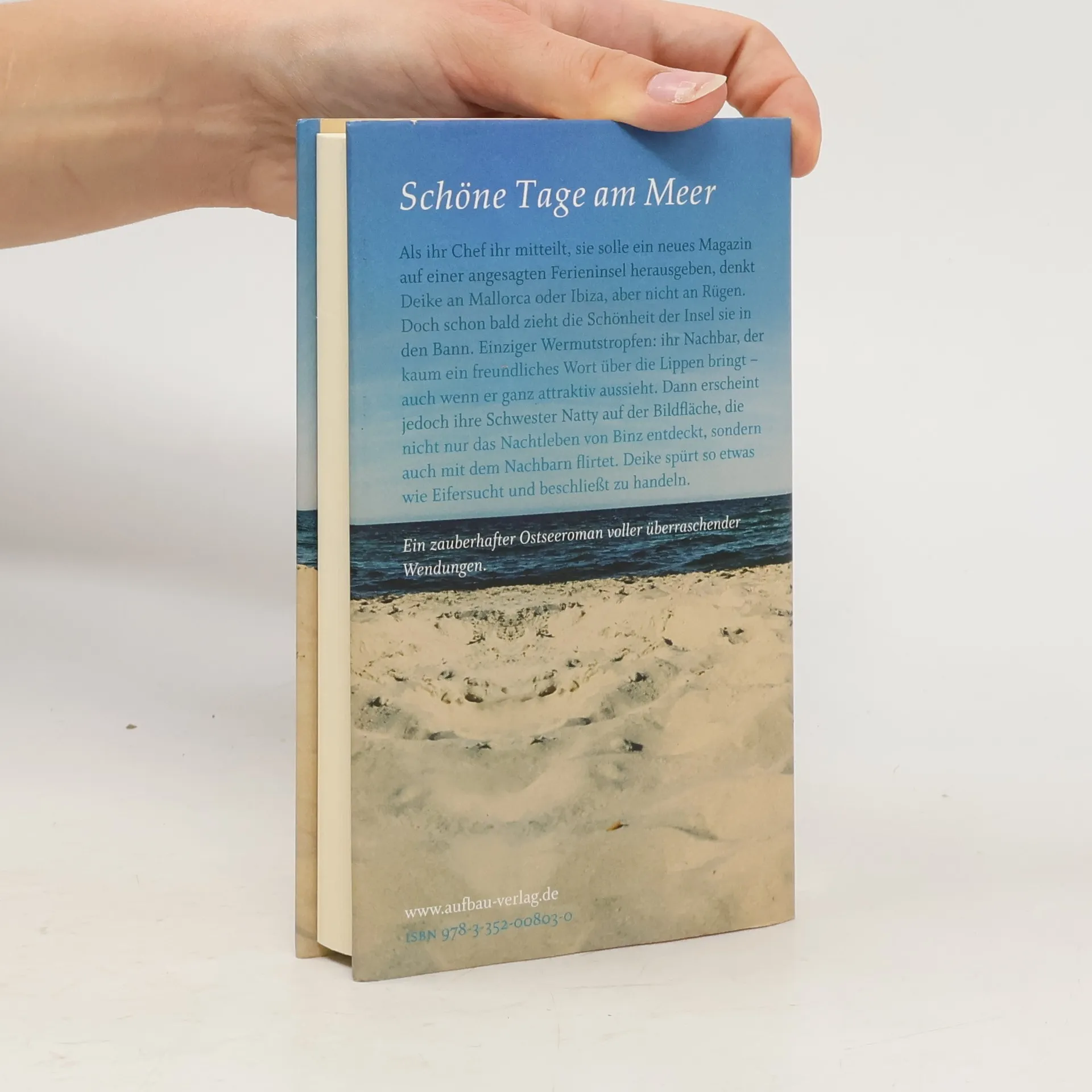 Schöne Tage am Meer Deike sieht sich als Großstadtpflanze, sie hat in Berlin und Frankfurt gelebt und träumt von Mallorca und Ibiza. Doch nun soll sie ausgerechnet auf Rügen ein Magazin für Touristen herausgeben. Auf den ersten Blick erscheint ihr die Insel als zu ruhig und provinziell. Das weitaus größere Problem ist ihr Nachbar, den sie, obschon er recht attraktiv ist, nur „Schlabberhosen-Hannes“ nennt. Hannes ist die Unfreundlichkeit in Person. Erst als Natty, Deikes Schwester, auftaucht, wird er zugänglicher. Er beginnt den beiden Frauen die Schönheiten der Insel zu zeigen. Gegen ihren Willen verliebt Deike sich in ihn und beginnt zu ahnen, dass auch er sich etwas aus ihr macht. Als sie schon glaubt, das Eis sei gebrochen, zieht er sich abrupt zurück. Sie ahnt, dass er ein Geheimnis hat. Spielt womöglich die Frau eine Rolle, mit der er sie beobachtet hat. Ein zauberhafter Ostseeroman voller überraschender Wendungen und eine Liebeserklärung an die Insel Rügen.