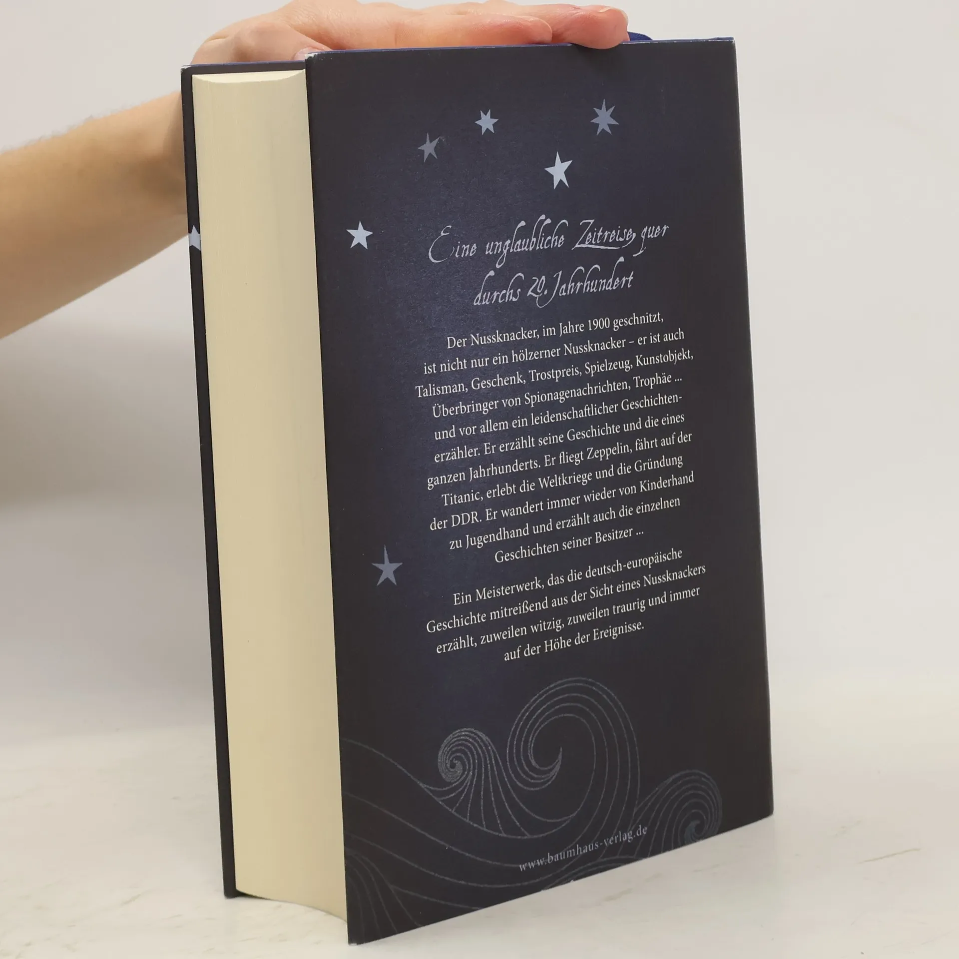 Der Nussknacker, im Jahre 1900 geschnitzt, ist nicht nur ein hölzener Nussknacker - er ist auch Talisman, Geschenk, Trostpreis, Spielzeug, Kunstobjekt, Überbringer von Spionagenachrichten, Trophäe ... und vor allem ein leidenschaftlicher Geschichtenerzähler. Er erzählt seine Geschichte und die eines ganzen Jahrhunderts. Er fliegt Zeppelin, fährt auf der Titanic, erlebt die Weltkriege und die Gründung der DDR. Er wandert immer wieder von Kinderhand zu Jugendhand und erzählt auch die einzelnen Geschichten seiner Besitzer ...