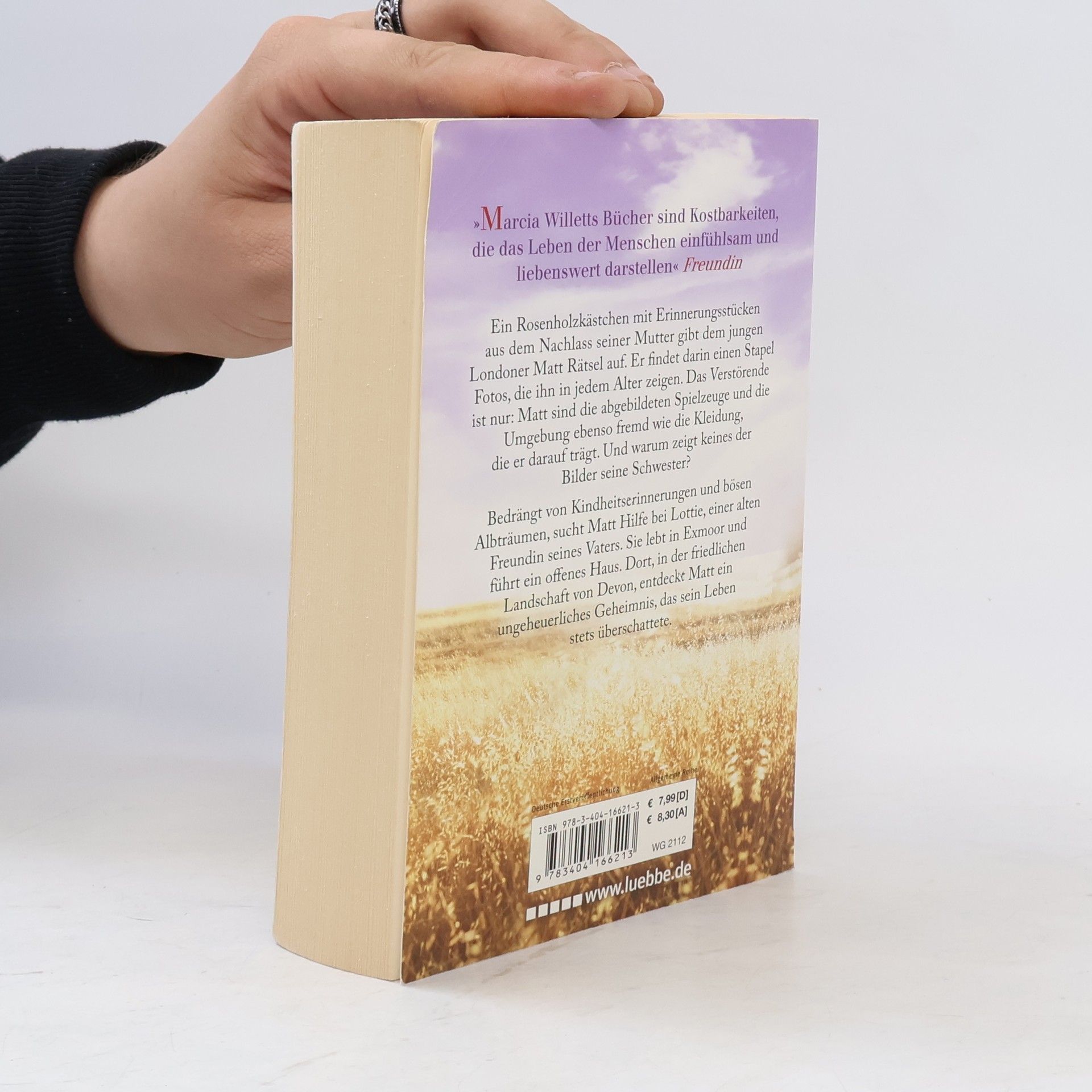 Ein Rosenholzkästchen mit persönlichen Erinnerungsstücken aus dem Nachlass seiner Mutter gibt dem jungen Londoner Matt Rätsel auf. Er findet darin einen Stapel Fotos, die ihn in jedem Alter zeigen. Das Verstörende ist nur: Matt sind die abgebildeten Spielzeuge und die Umgebung ebenso fremd wie die Kleidung, die er darauf trägt. Und warum zeigt keines der Bilder seine Schwester Imogen? Bedrängt von Kindheitserinnerungen und bösen Albträumen, sucht Matt Hilfe bei Lottie, einer alten Freundin seines Vaters. Sie lebt in Exmoor und führt ein offenes Haus. Dort, in der friedlichen Landschaft von Devon, entdeckt Matt ein ungeheuerliches Geheimnis, das sein Leben stets überschattet hat.