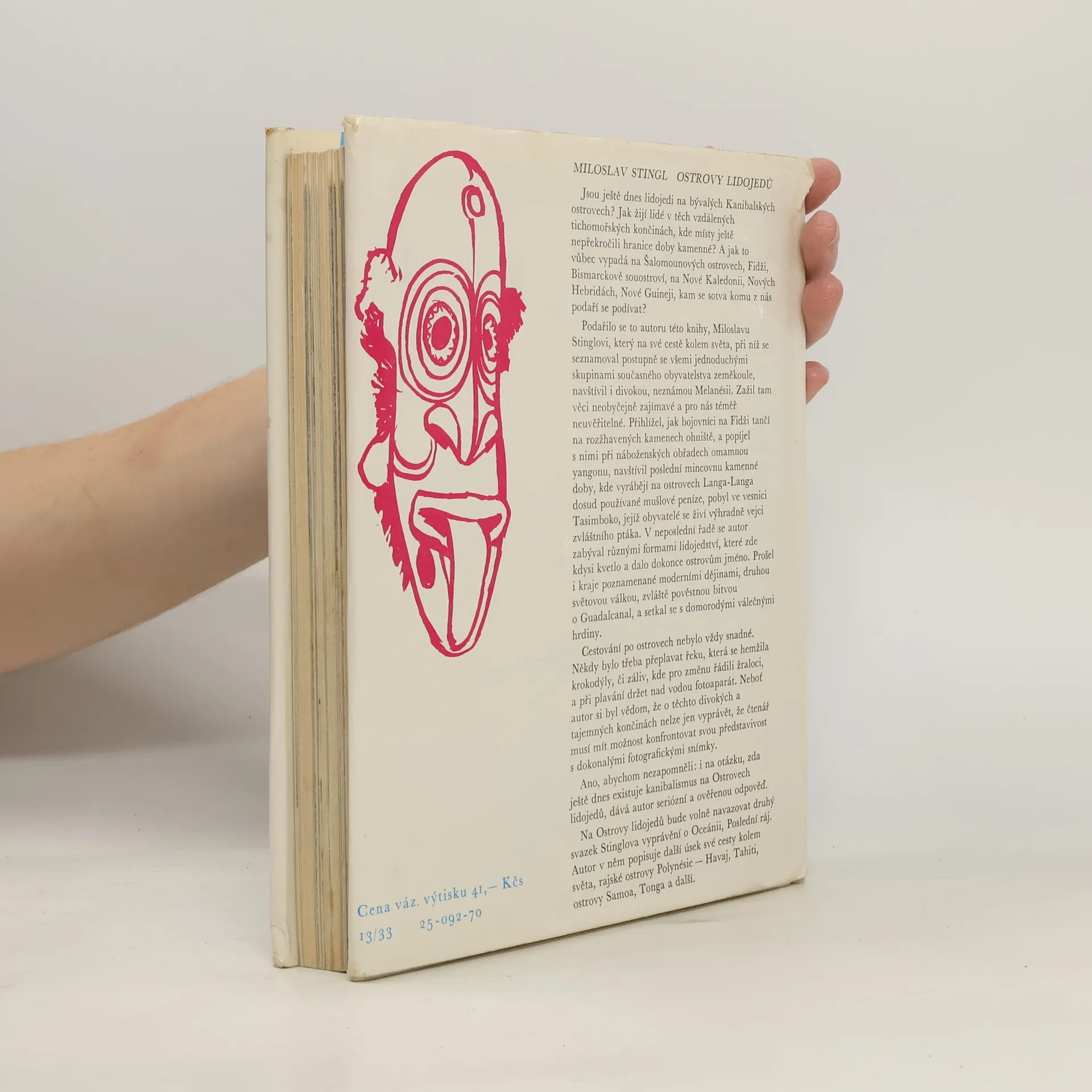 Miloslav Stingl, slavný český cestovatel, při své cestě kolem světa navštívil i divokou a neznámou Melanésii. Zažil tam věci neobyčejně zajímavé a pro nás téměř neuvěřitelné. Přihlížel, jak bojovníci na Fidži tančí na rozžhavených kamenech ohniště, a popíjel s nimi při náboženských obřadech omamnou yangonu, navštívil poslední mincovnu kamenné doby, kde vyrábějí na ostrovech Langa-Langa dosud používané mušlové peníze, pobyl ve vesnici Tasimboko, jejíž obyvatelé se živí výhradně vejci zvláštního ptáka. V neposlední řadě se autor zabýval různými formami lidojedství, které zde kdysi kvetlo a dalo dokonce ostrovům jméno.