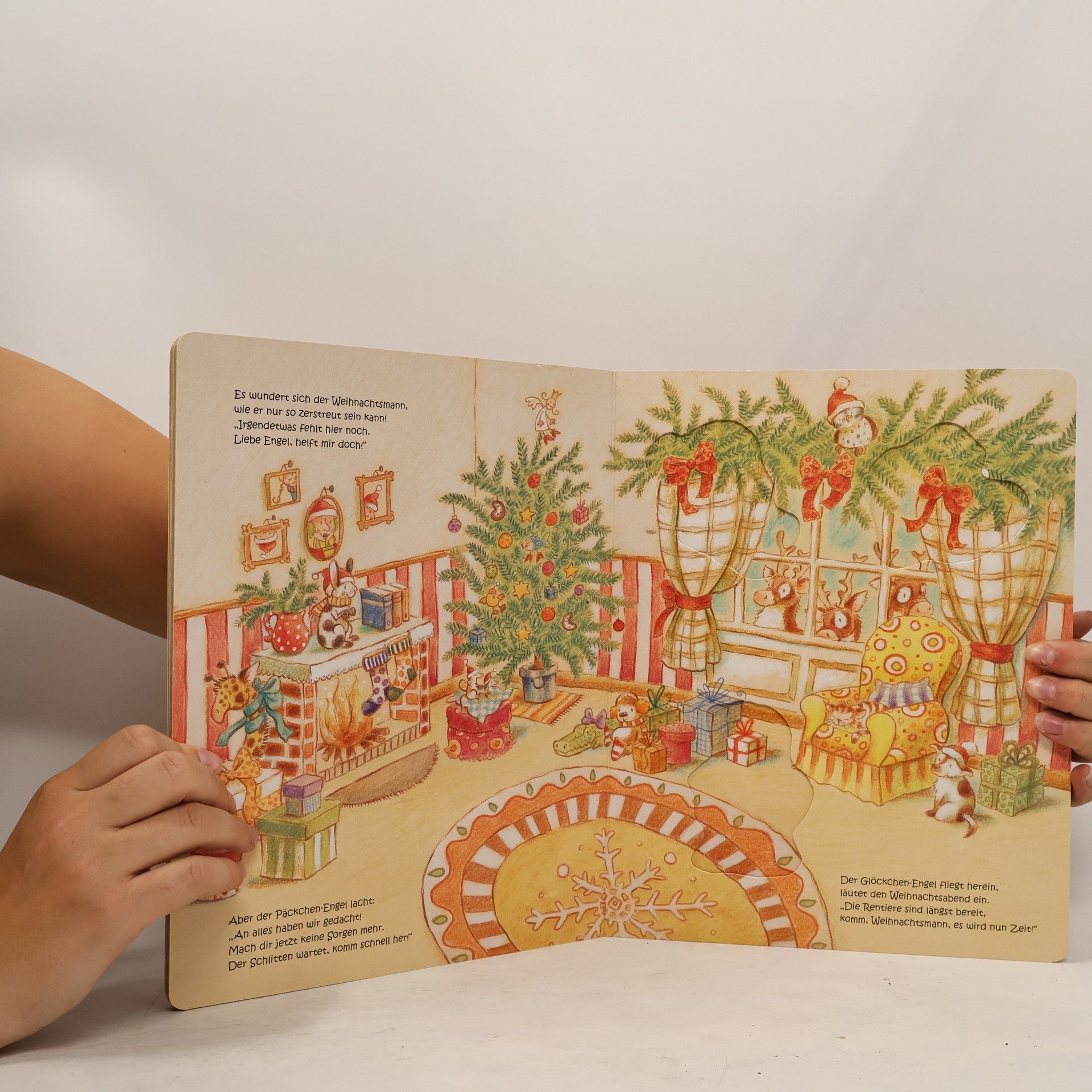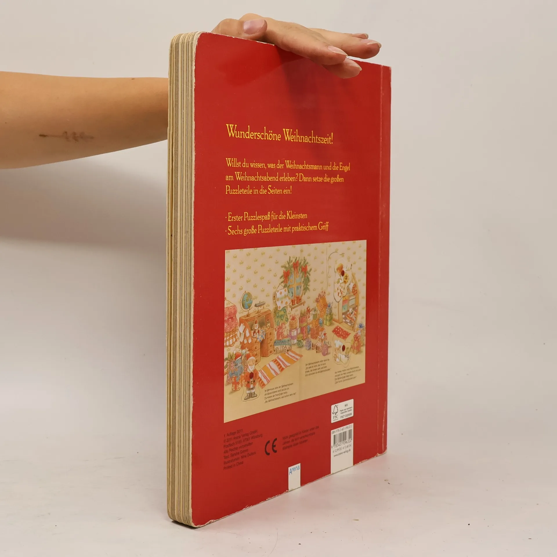 Bilderbuch- und Spielspaß in einem einzigartigen Konzept: Einfache Puzzlefiguren können durch den praktischen Griff schon von den Kleinsten ganz leicht aus dem Buch herausgenommen und in die lustigen Szenen rund das beliebte Thema „Weihnachten“ eingefügt werden. Und nach dem Spielen werden die Puzzleteile einfach wieder am richtigen Platz verstaut! Neue EU-Spielzeugrichtlinie: Achtung. Verschluckbare Kleinteile können sich lösen.
