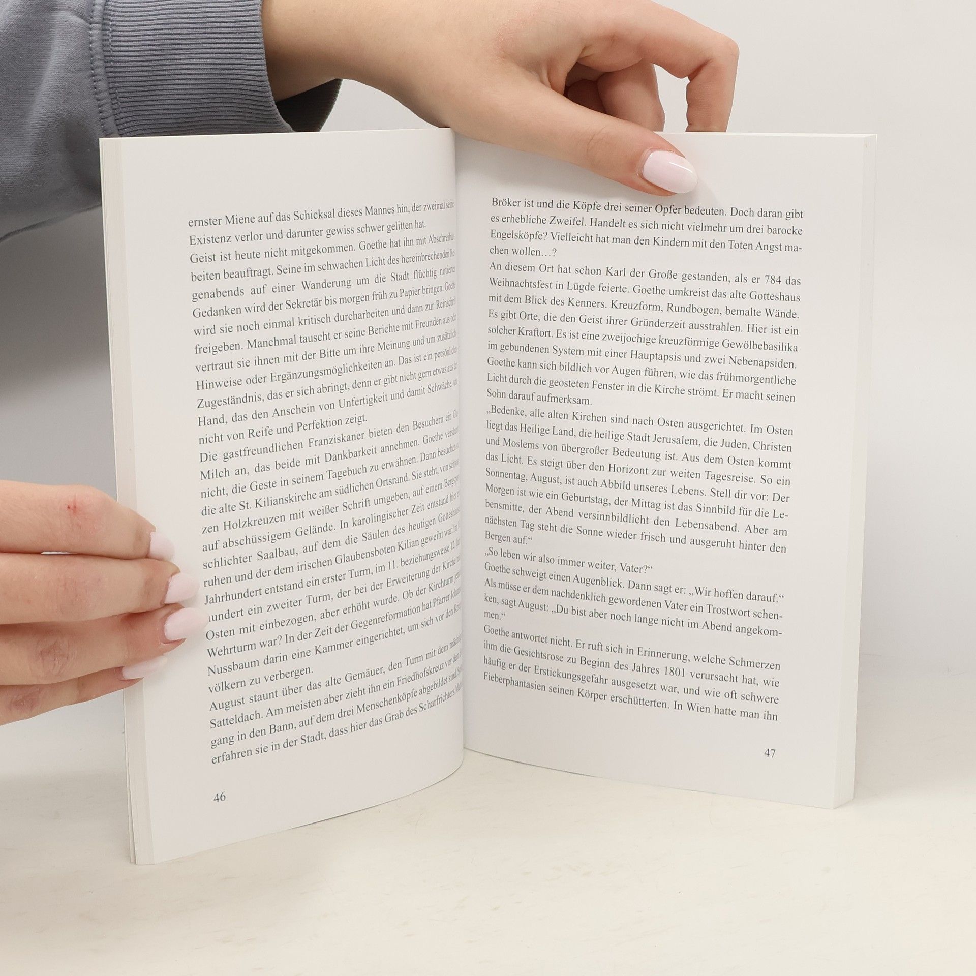 Im Juni und Juli 1801 weilt Johann Wolfgang von Goethe für sechs Wochen in dem geschätzten Modebad Pyrmont, um sich von den Folgen einer Gesichtsneurose zu erholen. Die „schlimme Krankheit“ hatte ihn gesundheitlich an den Rand physischer und psychischer Belastungen geführt, und nun hofft er, in dem aufstrebenden Bad, das er zum ersten Mal aufsucht, Heilung von seinen Leiden zu finden. In seiner Begleitung befinden sich sein elf-jähriger Sohn August sowie sein Sekretär und Diener Johann Jacob Ludwig Geist. Während seiner Badekur begegnet Goethe manchen Bekannten, schließt auch neue Freundschaften und nimmt am gesellschaftlichen Leben der Stadt teil. Er nutzt die Zeit außerhalb der Trink- und Badekur für die geschichtliche Erforschung seiner neuen Umgebung und lässt auch August daran teilhaben. Autor Hermann Multhaupt hat die Stationen des Goethe-Aufenthaltes in Pyrmont verfolgt und sie in damals aktuelle Geschichtsabläufe und fiktive Ereignisse eingebunden.