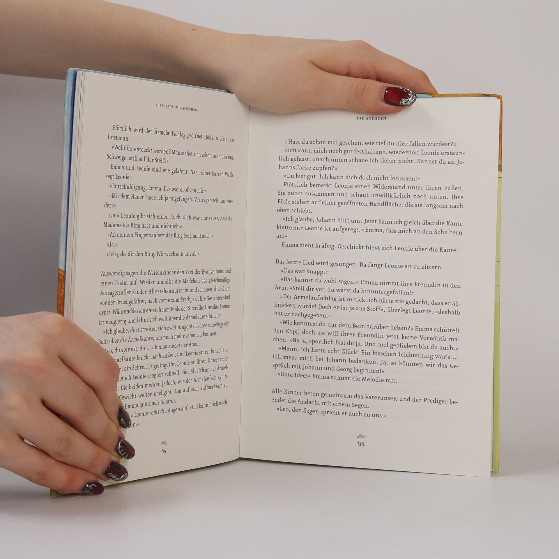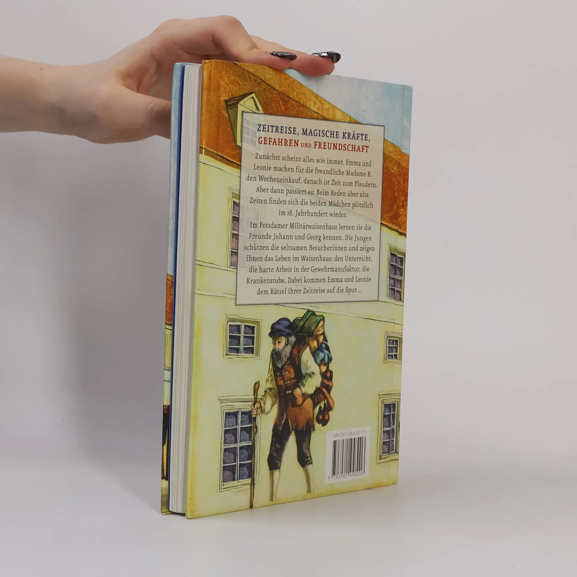 Zunächst scheint alles wie immer. Emma und Leonie machen für die freundliche Madame R. den Wocheneinkauf, danach ist Zeit zum Plaudern. Aber dann passiert es: Beim Reden über alte Zeiten finden sich die beiden Mädchen auf einmal im 18. Jahrhundert wieder. Im Potsdamer Militärwaisenhaus lernen sie Johann und Georg kennen. Die beiden Freunde schützen die ungewöhnlichen Besucherinnen und zeigen ihnen das Leben im Waisenhaus: den Unterricht, die harte Arbeit in der Manufaktur, die Krankenstube. Dabei kommen Emma und Leonie dem Rätsel ihrer Zeitreise auf die Spur. Sie verfügen über besondere Kräfte. Die vier Kinder beschließen, der schwer kranken Wilhelmine zu helfen; es gilt, eine lebensrettende Medizin zu besorgen. Es ist ein Unterfangen, das Gefahren birgt und manch schwierige Entscheidung verlangt. Welche Rolle aber spielt die geheimnisvolle Madame R. bei diesem Abenteuer – was hat es genau mit ihrem Ring auf sich?