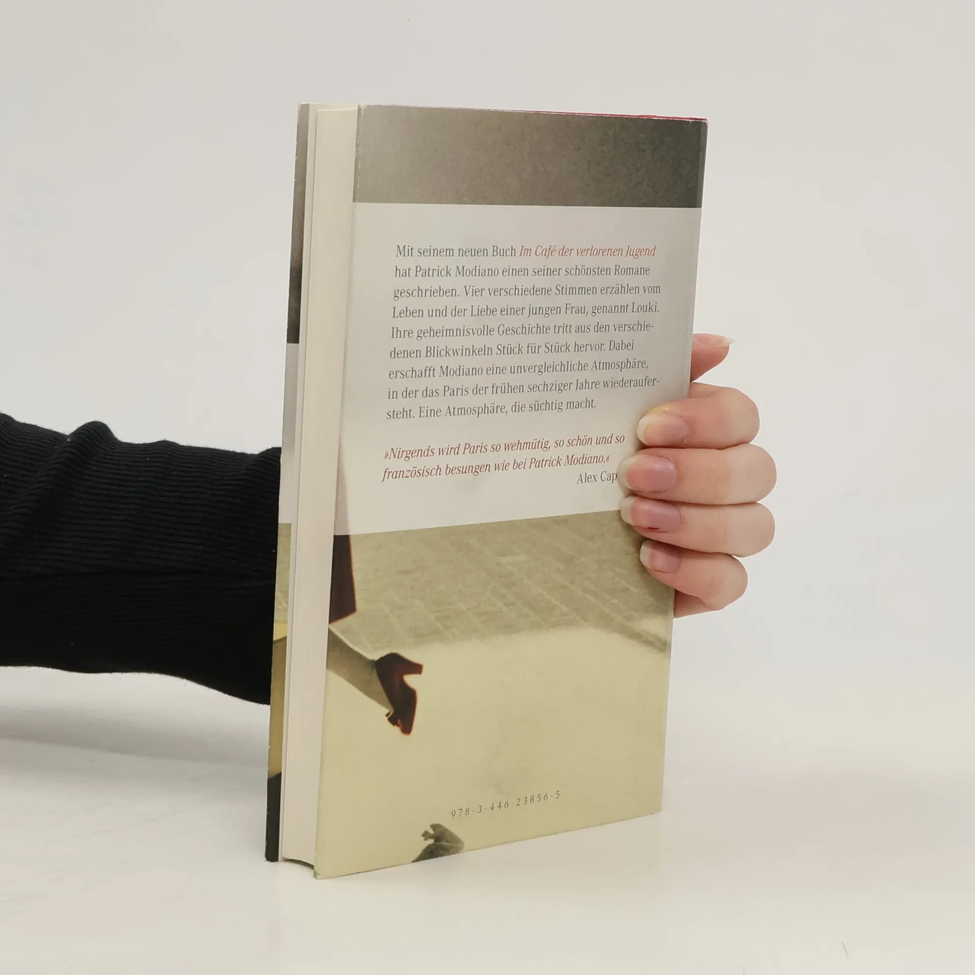 Paris in den 60er Jahren: Schon als junges Mädchen ist Louki aus der Wohnung der Mutter, einer Platzanweiserin im Moulin Rouge, immer wieder weggelaufen. Den Vater hat sie nie gesehen. Ihren Mann, einen wohlsituierten Immobilienmakler, verließ sie ein Jahr nach der Heirat wieder. Mit ihrem Geliebten, dem angehenden Schriftsteller Roland, streift sie tagelang durch die große Stadt. Im Café Le Condé, dem „Café der verlorenen Jugend“, glaubt Louki Zuflucht zu finden, während der Detektiv ihres Mannes schon ihre Spur aufgenommen hat. Mit „Im Café der verlorenen Jugend“ hat Patrick Modiano einen seiner schönsten Romane geschrieben. Die Kritik feierte ihn als einen der größten zeitgenössischen Schriftsteller Frankreichs.