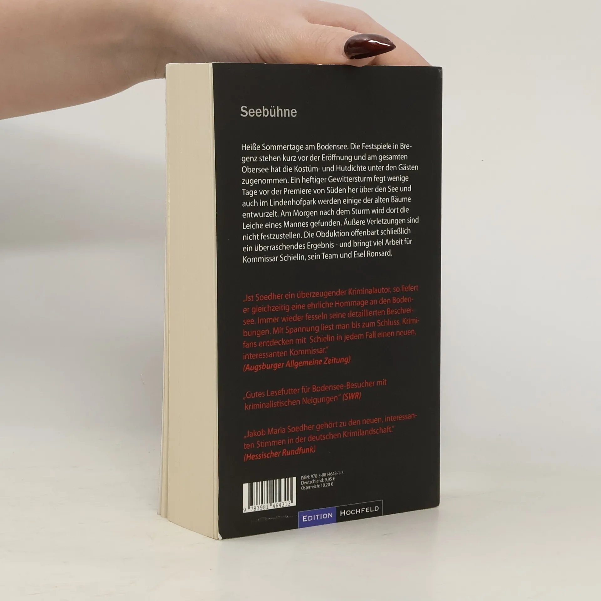 Bittere Kälte hält die Lindauer Insel im Griff. Im Seehafen laufen die letzten Vorbereitungen für die Hafenweihnacht, als im Morgengrauen die Leiche eines Mannes gefunden wird - unter einer dünnen Schneedecke und festgefroren am Bootssteg. Seine Identität lässt sich nicht klären und die Obduktion hält für die Kripo Lindau eine Überraschung bereit. Ein neuer Fall für das Team um Bodenseekommissar Schielin und seinen französischen Esel Ronsard.