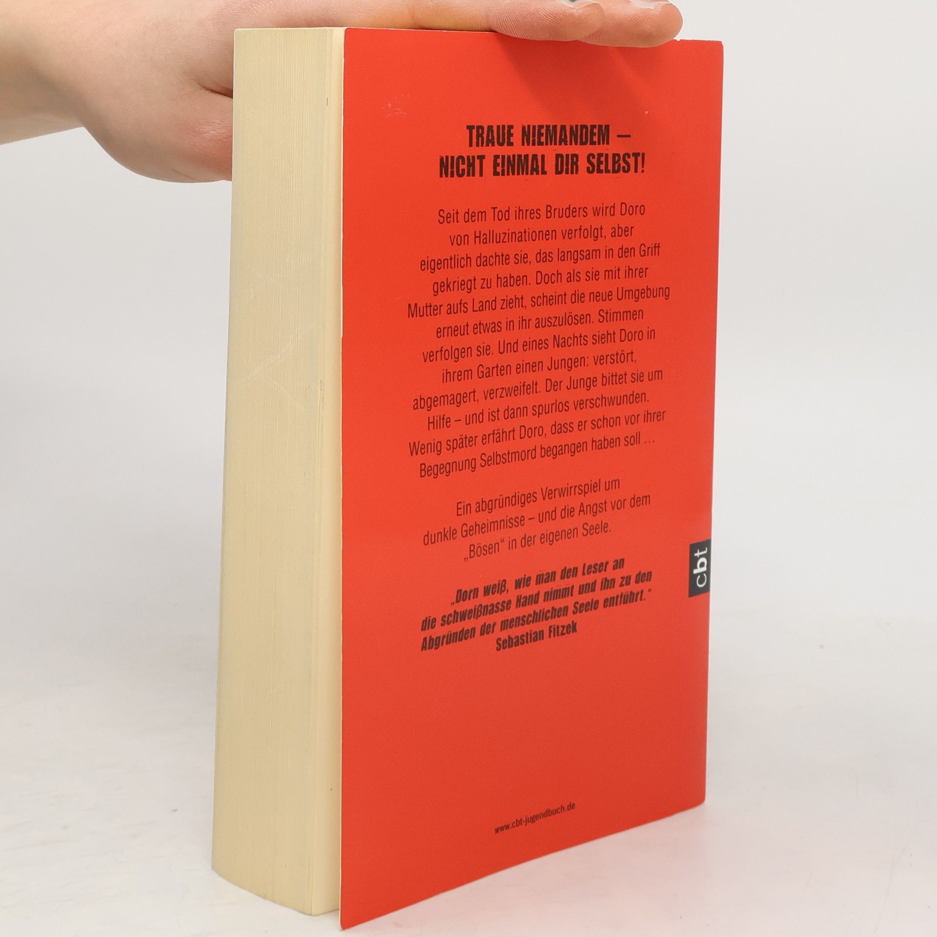 Ein abgründiges Verwirrspiel um dunkle Geheimnisse – und die Angst vor dem »Bösen« in der eigenen Seele Was tust du, wenn du nicht mehr weißt, was Realität ist und was Fantasie? Seit dem Tod ihres Bruders wurde Doro von Halluzinationen verfolgt, aber eigentlich dachte sie, das in den Griff gekriegt zu haben. Doch als sie mit ihrer Mutter aufs Land zieht, scheint die neue Umgebung erneut etwas in ihr auszulösen. Stimmen verfolgen sie. Und eines Nachts sieht Doro in ihrem Garten einen Jungen: verstört, abgemagert, verzweifelt. Der Junge bittet sie um Hilfe – und ist dann verschwunden. Wenig später erfährt Doro, dass er schon vor ihrer Begegnung Selbstmord begangen hat. Doro kann nicht glauben, dass sie sich den Jungen nur eingebildet hat. Doch die Suche nach der Wahrheit wird schnell zum Albtraum. Und tief in Doros Seele lauert ein dunkles Geheimnis ... Altersempfehlung: Ab 14