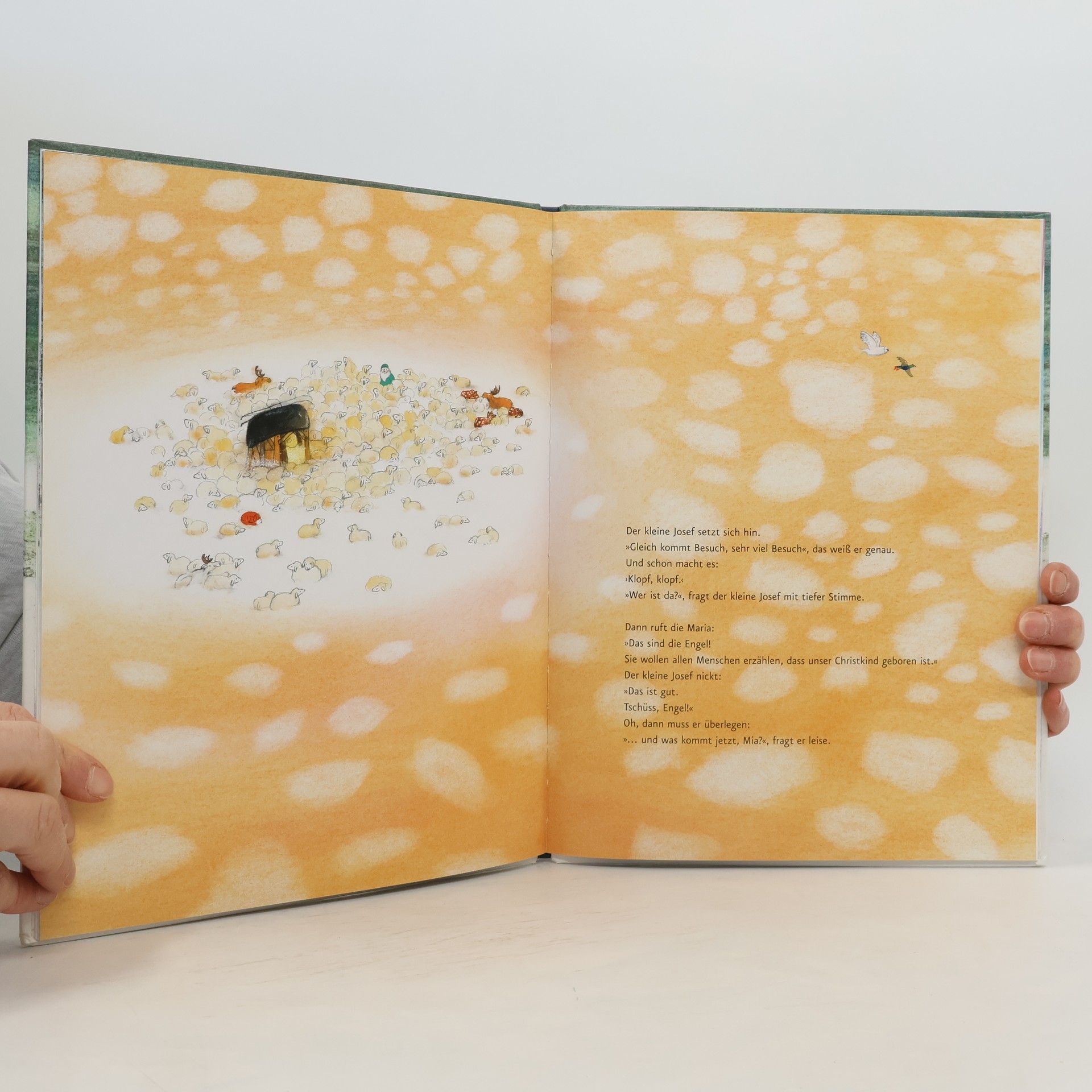 Mia und ihr kleiner Bruder Jona gehen auf die Reise nach Bethlehem. Denn Mia weiß genau, was sich damals in jener besonderen Nacht abgespielt hat. Die Geschwister spielen auf unnachahmliche Weise die Geschichte von Maria und Josef nach. Auf ihrem abenteuerlichen Weg klopfen sie an verschlossene Türen und bauen schließlich eine Herberge. Die Weihnachtsgeschichte, erzählt mit kindlicher Fantasie von Annette Langen und wunderschön bebildert von Marije Tolman. Eine Expedition in Worten und Bildern, wo Realität, Überlieferung und Fantasie aufeinandertreffen.