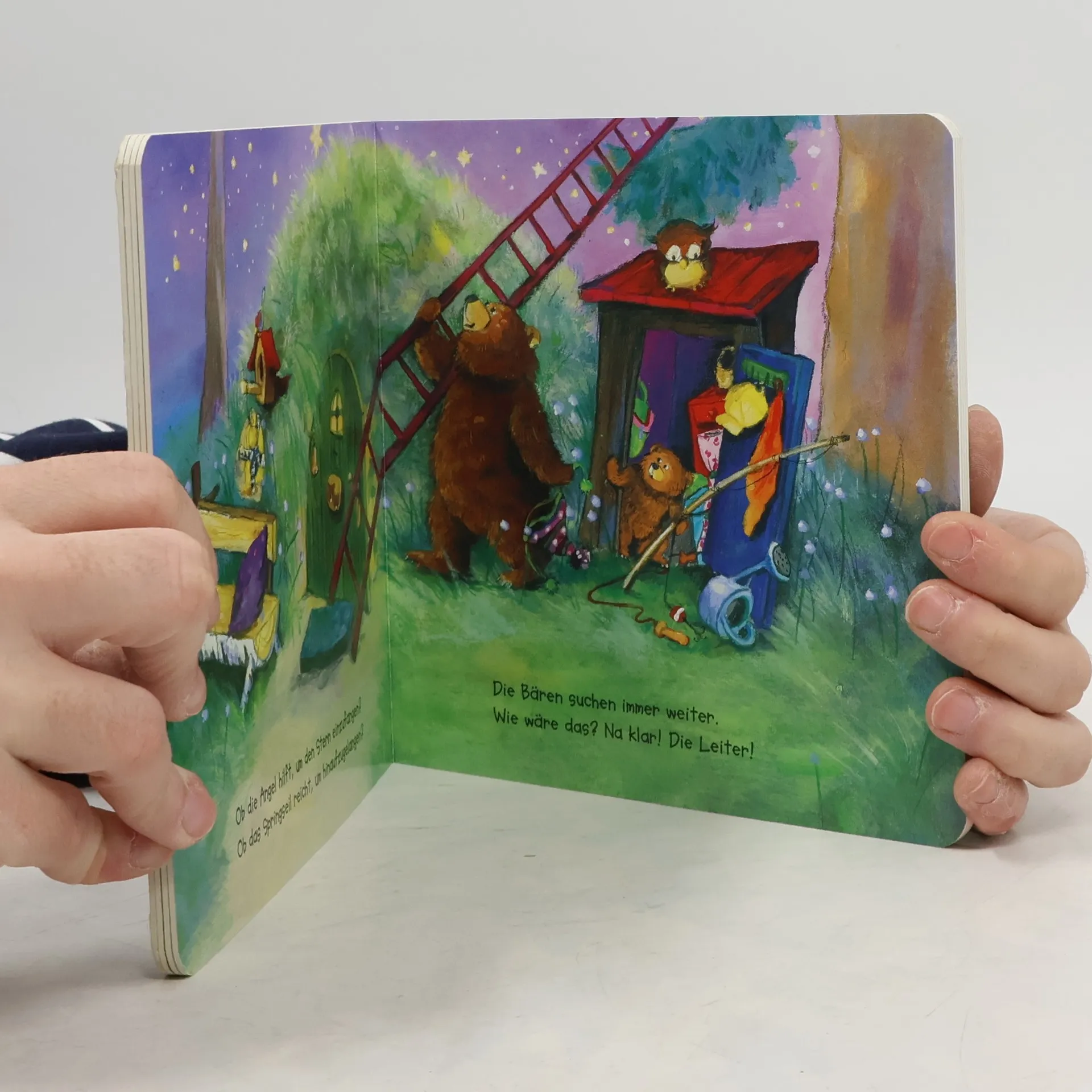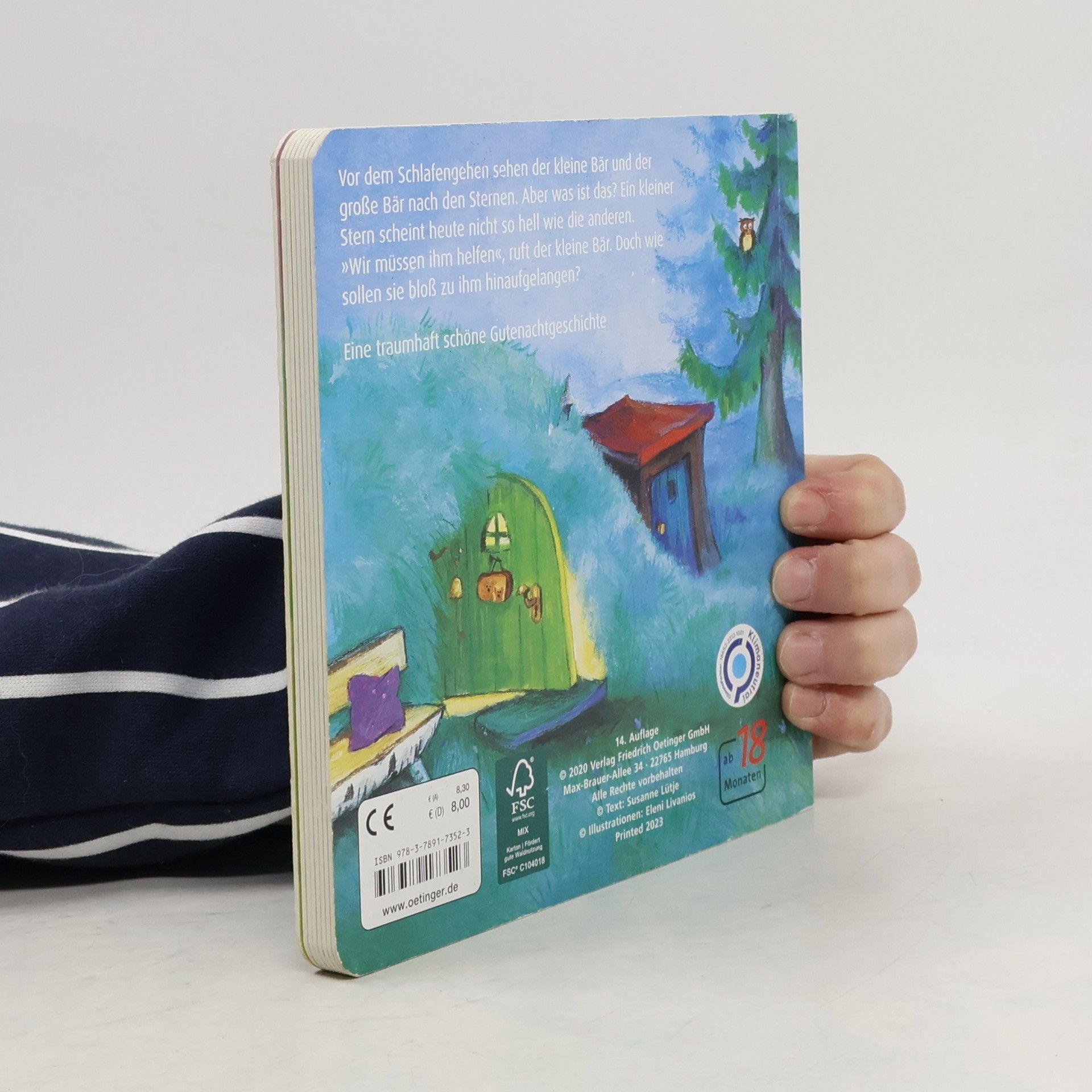 Allerliebste Gutenachtgeschichte für Kuschelkinder Vor dem Zubettgehen sehen der kleine Bär und der große Bär noch einmal nach den Sternen. Doch ein kleiner Stern scheint heute nicht so hell wie die anderen. Sofort suchen die Bären nach einer Möglichkeit, ihm zu helfen. Mit der Leiter klettern sie zu dem kleinen Stern hinauf und setzen ihm eine Mütze auf. Jetzt geht es dem kleinen Stern bestimmt bald wieder besser und der kleine Bär kann ganz beruhigt einschlafen. Poetische Gutenachtgeschichte mit wunderschönen, malerischen Bildern und liebevollen Reimen zum Mitsprechen. Begleitet Kinder sanft in den Schlaf mit einer Geschichte über Hilfsbereitschaft und die Bedeutung von Familie. Lädt zum Kuscheln ein und stärkt das Gefühl von Geborgenheit und Sicherheit bei Kindern vor dem Schlafengehen - für wertvolle gemeinsame Vorlesemomente zwischen Eltern und Kindern.