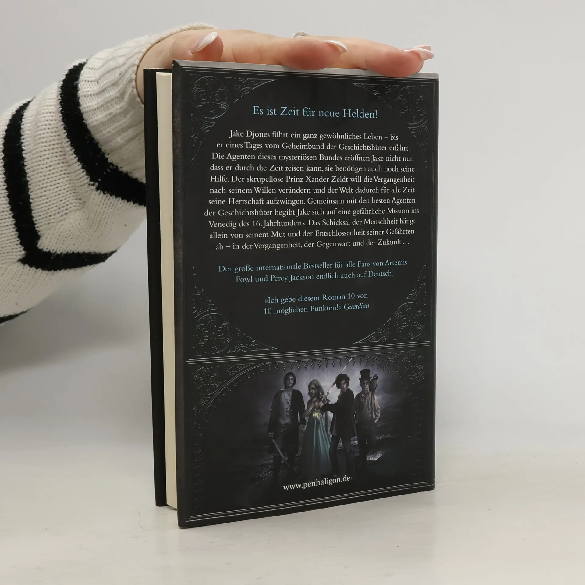 Es ist Zeit für neue Helden! Jake Djones führt ein ganz gewöhnliches Leben – bis er eines Tages vom Geheimbund der Geschichtshüter erfährt. Die Agenten dieses Bundes eröffnen Jake nicht nur, dass er durch die Zeit reisen kann, sie benötigen auch noch seine Hilfe. Der skrupellose Prinz Xander Zeldt will die Vergangenheit nach seinem Willen verändern und der Welt damit für alle Zeit seine Herrschaft aufzwingen. Gemeinsam mit den besten Agenten der Geschichtshüter begibt Jake sich auf eine gefährliche Mission ins Venedig des 16. Jahrhunderts. Das Schicksal der Menschheit hängt allein von ihrer Entschlossenheit ab – in der Vergangenheit, der Gegenwart und der Zukunft. Abenteuer, Action und Liebe – vier Helden reisen durch die Jahrhunderte. Der Beginn einer Serie, die einen sofort in ihren Bann zieht.