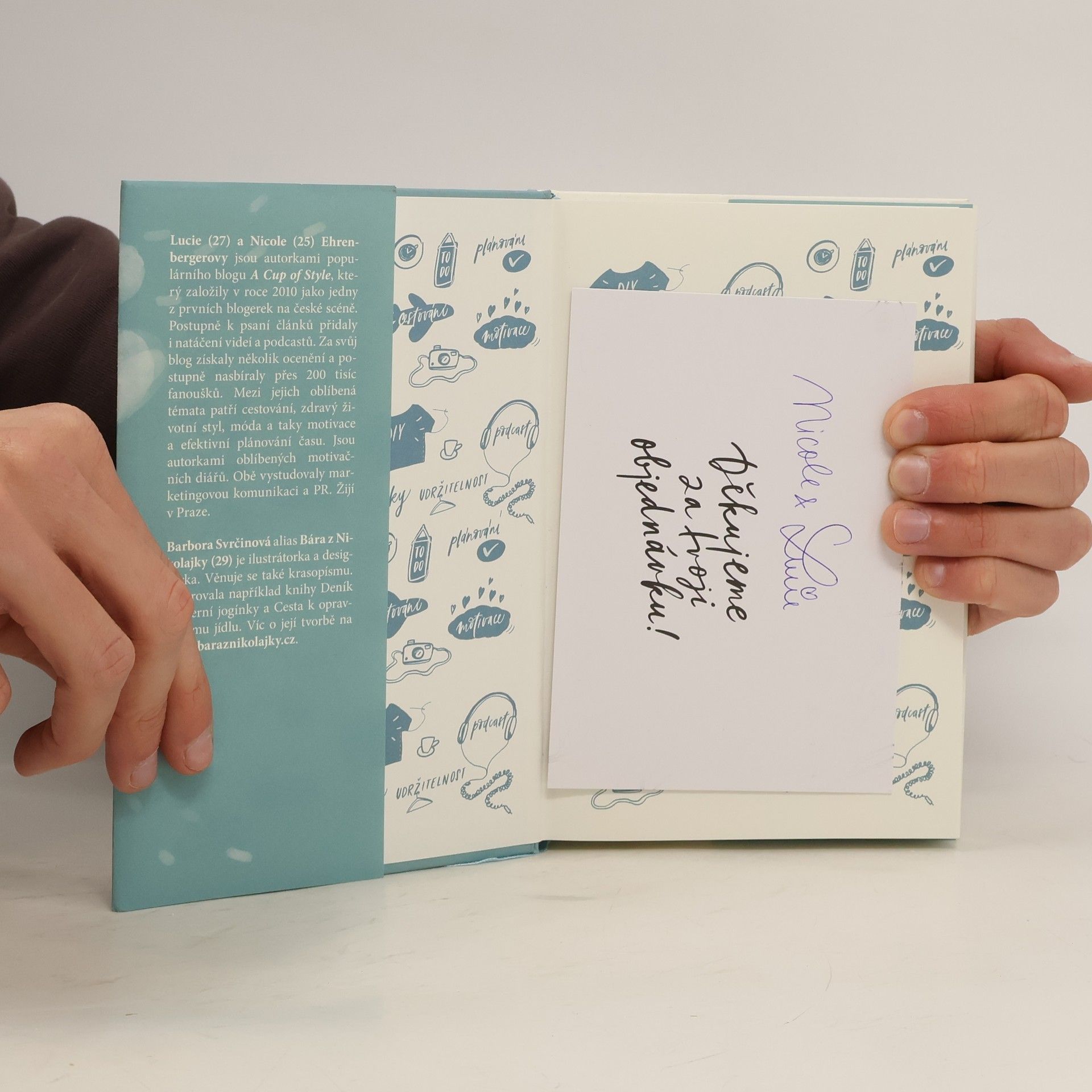 Lucie a Nicole odjakživa dělají všechno spolu. Jsou to ségry a nejlepší kámošky. Jejich blog A Cup of Style nedávno oslavil deset let, a u té příležitosti nám o něm povyprávějí. Jak je vlastně napadlo blog založit? Jaké byly začátky? Co se po cestě pokazilo a co naopak vyšlo? Příběhy vyprávěné s upřímností, lehkostí a humorem čtenáře nejen rozesmějí, ale i dodají odvahu jít za vlastními sny. Blogerky připomínají, že není nad to přijmout pořádnou výzvu a nebát se se do všeho pustit po hlavě. Knihu doprovázejí půvabné ilustrace výtvarnice Barbory Svrčinové.