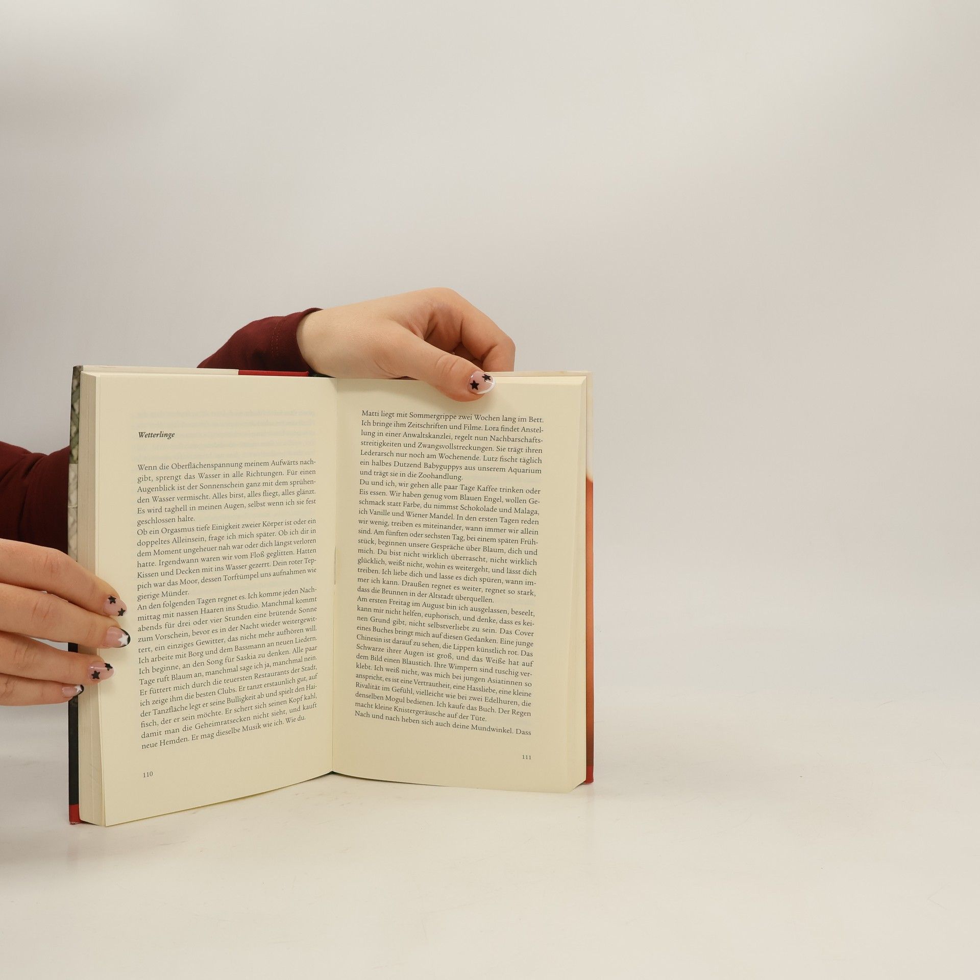 Das Mehlige einer Pflaumenhaut, Nebeltau. Das Überfließen des Safts beim Essen einer Tomate, das Geräusch beim Öffnen einer Kaffeepackung: Mit allen Sinnen schöpft die junge Musikerin aus der Fülle des Lebens, weltverliebt und weltentrückt zugleich, versunken in die Schönheit der Details. Musik ist ihr Lebenselixier, ihr mythischer Himmel. Wie auf einem Drahtseil balanciert die Sängerin über den Dingen, getragen durch ihr Publikum, im Gleichgewicht gehalten durch zwei Männer, die sie vergöttern, egal, welches Spiel sie mit ihnen spielt: Der meeräugige Blaum, der ihr nie den Gefallen tut, sich im Klischee des Businessman zu erschöpfen, und Fender, das poetische Du, der Mann, der sie kennt wie kein anderer. Doch da ist noch etwas anderes, ein leiser Unterton, der sie an die Fragilität ihres Glücks erinnert: das unverwandte Gefühl, dass die Welt ständig im Zusammenbrechen begriffen ist.