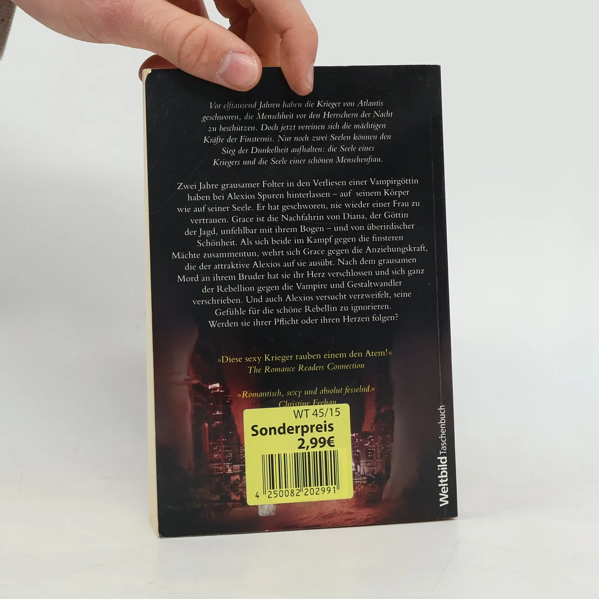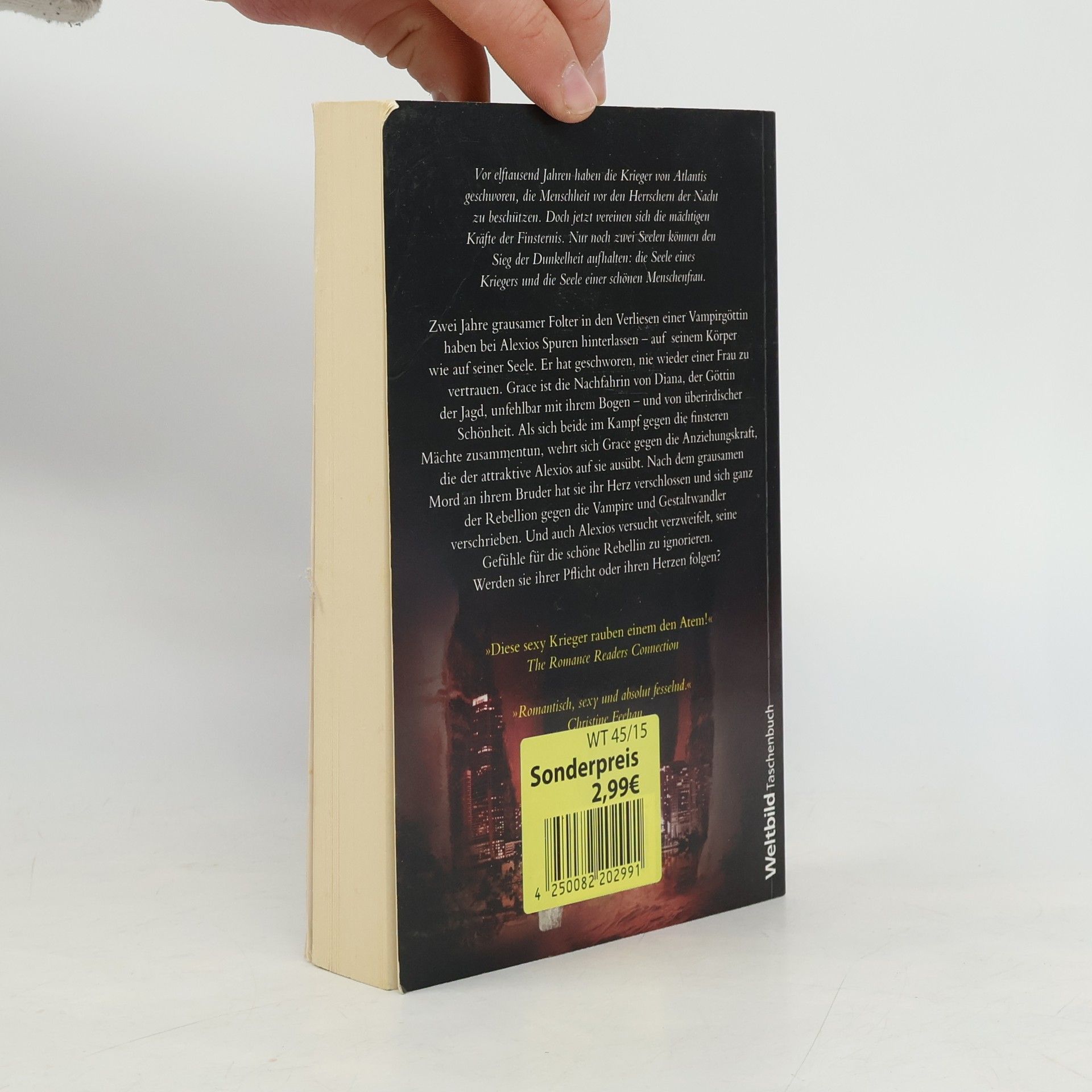 Vor elftausen Jahren haben die Krieger von Atlantis geschworen, die Menschheit vor den Herrschern der Nacht zu beschützen. Doch jetzt vereinen sich die mächtigen Kräfte der Finsternis. Nur noch zwei Seelen können den Sieg der Dunkelheit aufhalten: die Seele eines Kriegers und die Seele einer schönen Menschenfrau. Zwei Jahre grausamer Folter in den Verliesen einer Vampirgöttin haben bei Alexios Spuren hinterlassen - auf seinem Körper wie auf seiner Seele. Er hat geschworen, nie wieder einer Frau zu vertrauen. Grace ist die Nachfahrin von Diana, der Göttin der Jagd, unfehlbar mit ihrem Bogen - und von überirdischer Schönheit. Als sich beide im Kampf gegen die finsteren Mächte zusammentun, wehrt sich Grace gegen die Anziehungskraft, die attraktive Alexios auf sie ausübt. Nach dem grausamen Mord an ihrem Bruder hat sie ihr Herz verschlossen und sich ganz der Rebellion gegen die Vampire und Gestaltwandler verschrieben. Und auch Alexios versucht verzweifelt, seine Gefühle für die schöne Rebellin zu ignorieren. Werden sie ihrer Pflicht oder ihren Herzen folgen?
