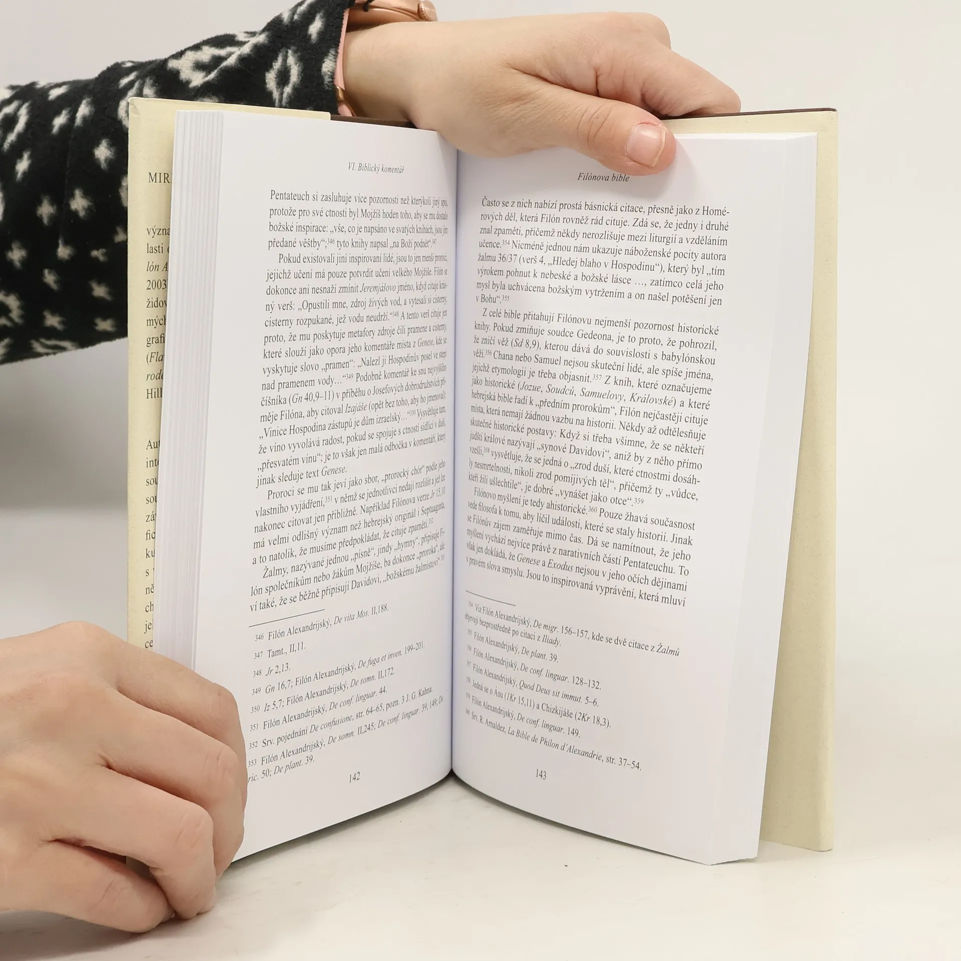 Autorka zasazuje Filónův život a jeho intelektuální činnost do historických souvislostí na přelomu epoch (Filón byl současníkem Ježíšovým), všímá si jeho závislosti na dobovém řeckém filosofickém myšlení na jedné straně, a pokusů vyrovnávat se v tomto kontextu s vlastní náboženskou tradicí na straně druhé. Sleduje rovněž osud jeho duchovního dědictví, který měl vliv i na jeho pozdější dějinný obraz: apropriace jeho díla křesťanskou církví vedla k mylným představám o jeho konverzi, či dokonce o jeho biskupské hodnosti. Hlavní zájem práce se však zaměřuje na Filónovy alegorické biblické komentáře, i ve vztahu k midrašické produkci palestinského židovstva, a předkládá základní Filónovy filosoficko-theologické koncepce, týkající se zejména představy Boha a jeho stvořitelského díla prostřednictvím božského Logu.